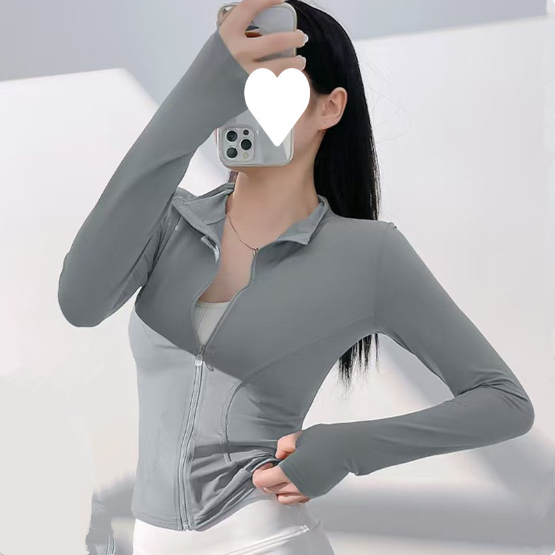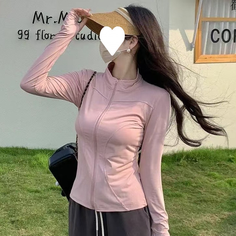 立领防晒衣冰丝速干短款瑜伽服女夏薄款户外骑行跑步防紫外线上衣