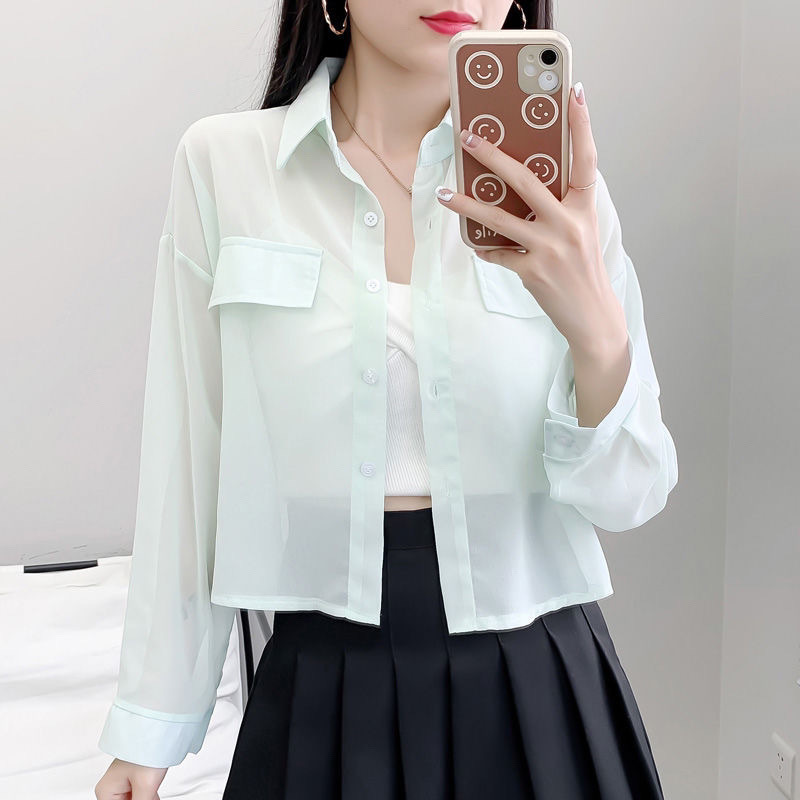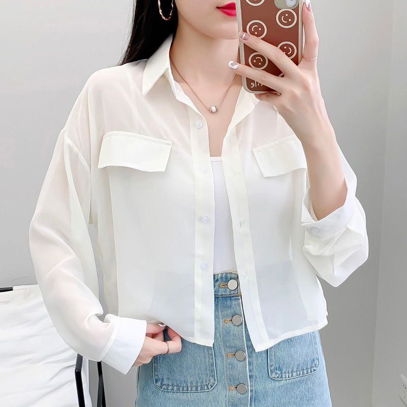 夏季雪纺防晒衣女短款外套时尚小外搭薄款披肩长袖空调衫百搭开衫