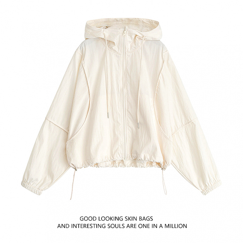 百搭连帽休闲短款防晒衣女2025夏季透气薄款防紫外线宽松防晒上衣