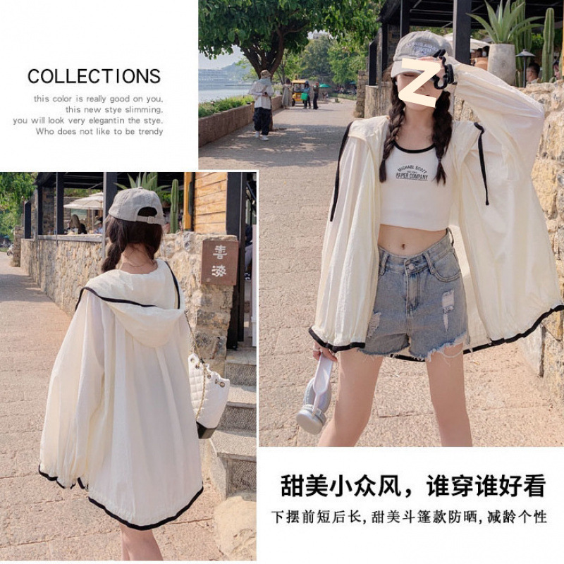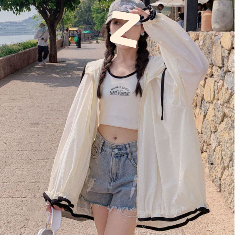 2025新款时尚连帽防晒衣女夏季长袖薄款外套韩版宽松透气防晒服女