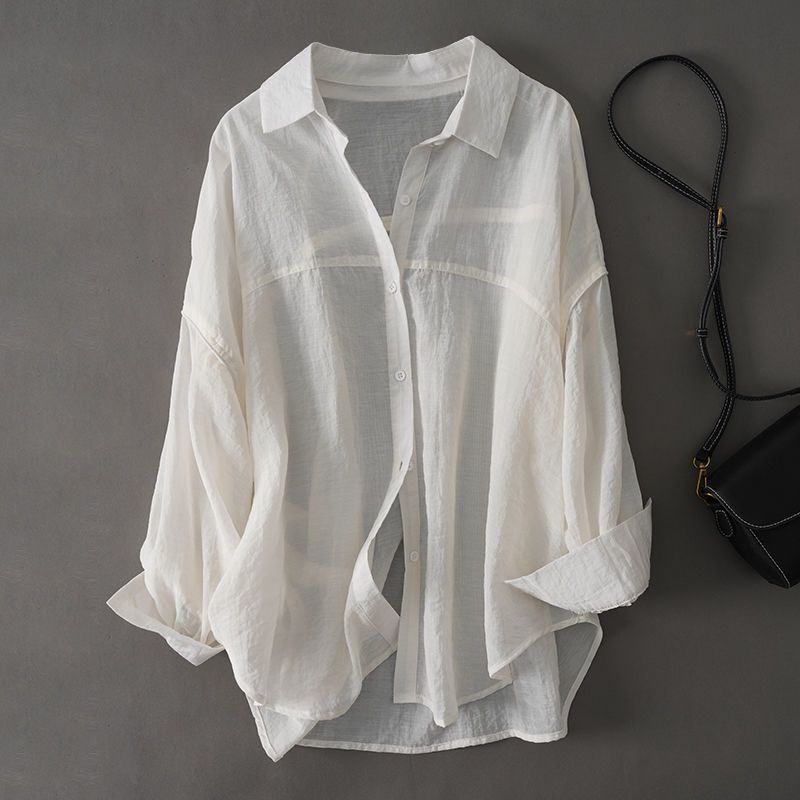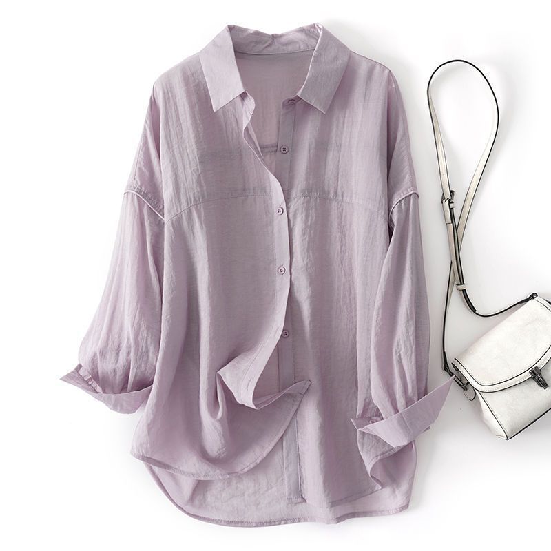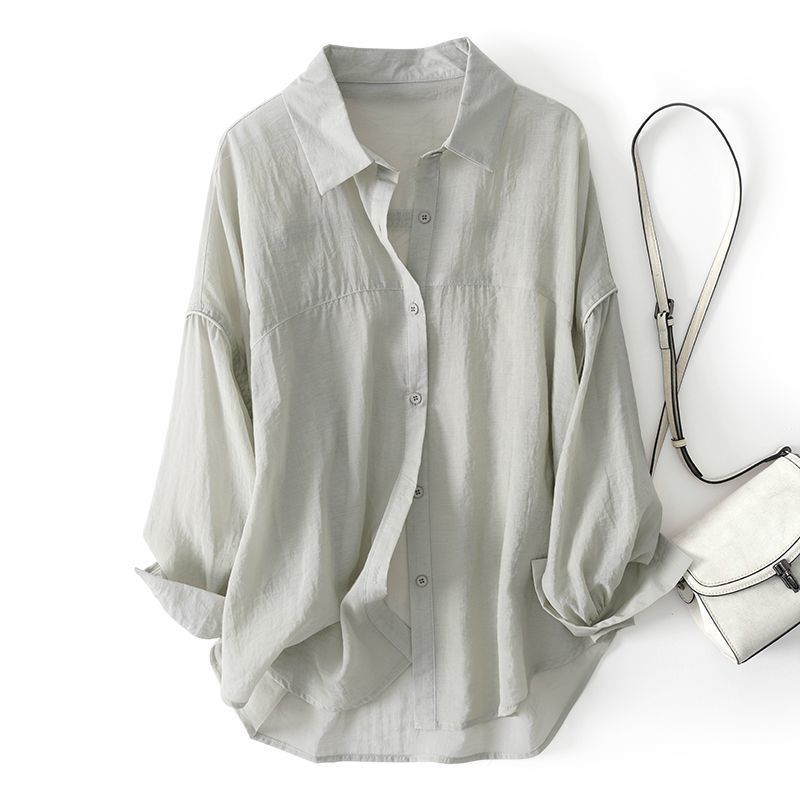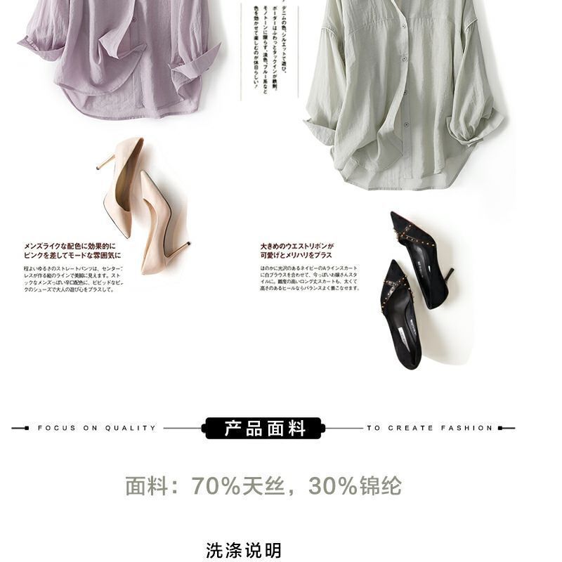 上新轻奢春夏新款宽松透气天丝长袖衬衫设计感休闲衬衣防晒服女