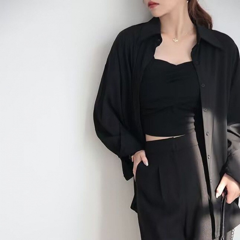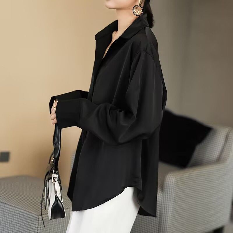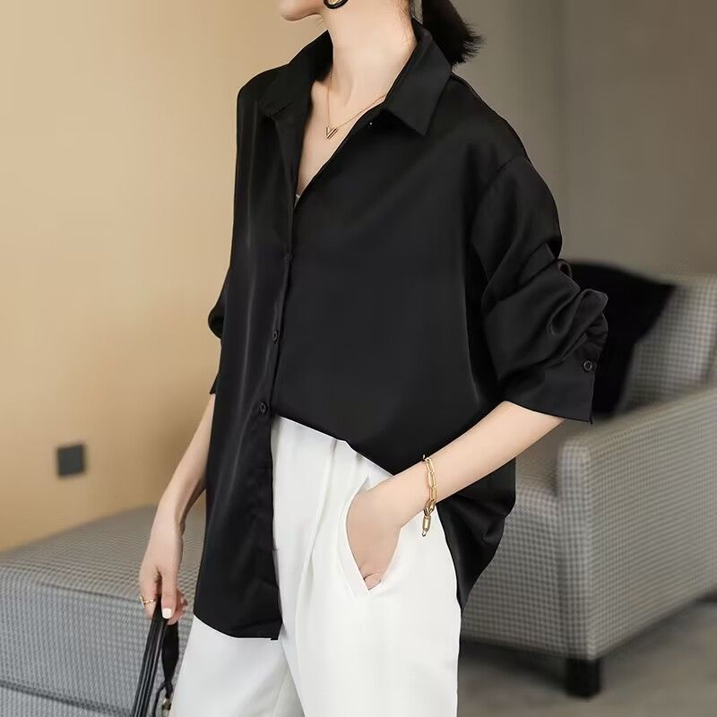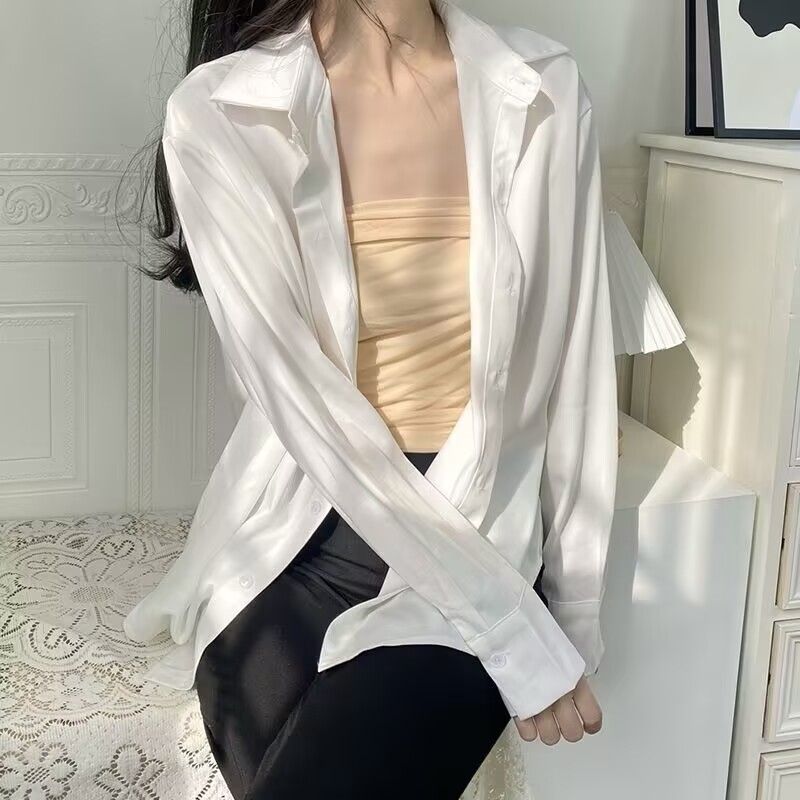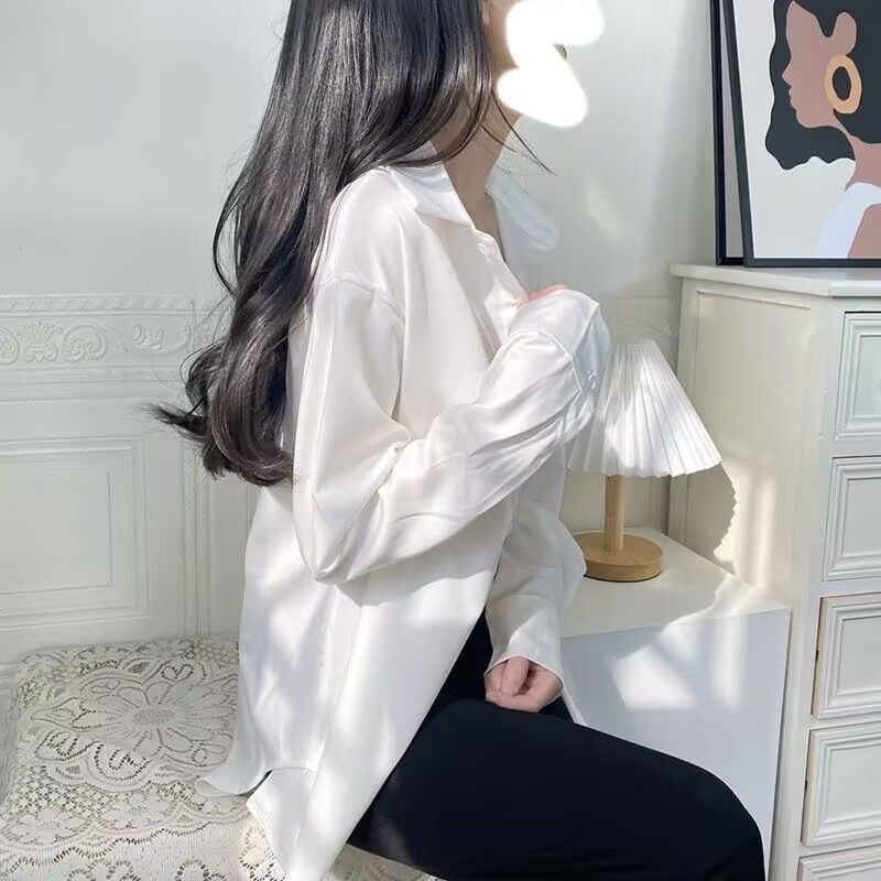 夏季冰丝白色衬衫女垂感感抗皱轻奢质感长袖防晒衣防紫外线衬衣