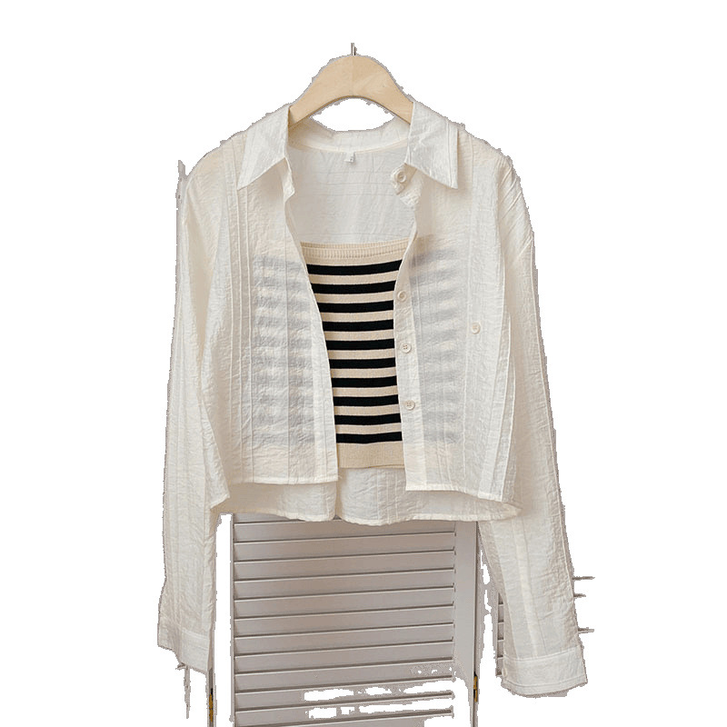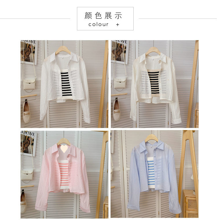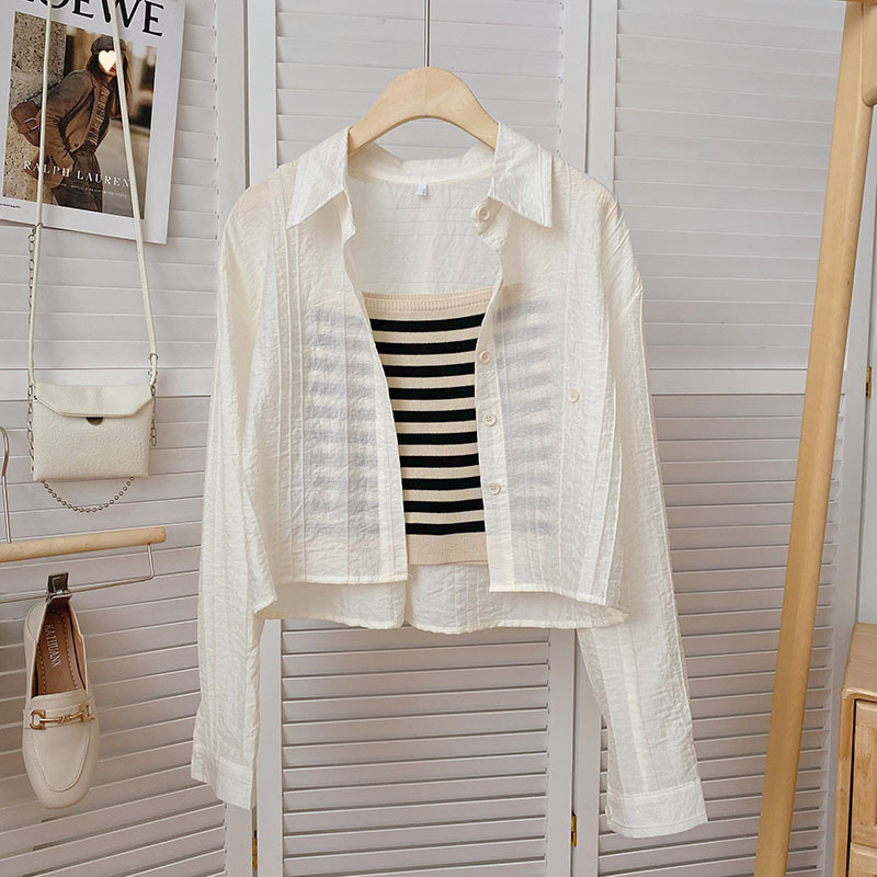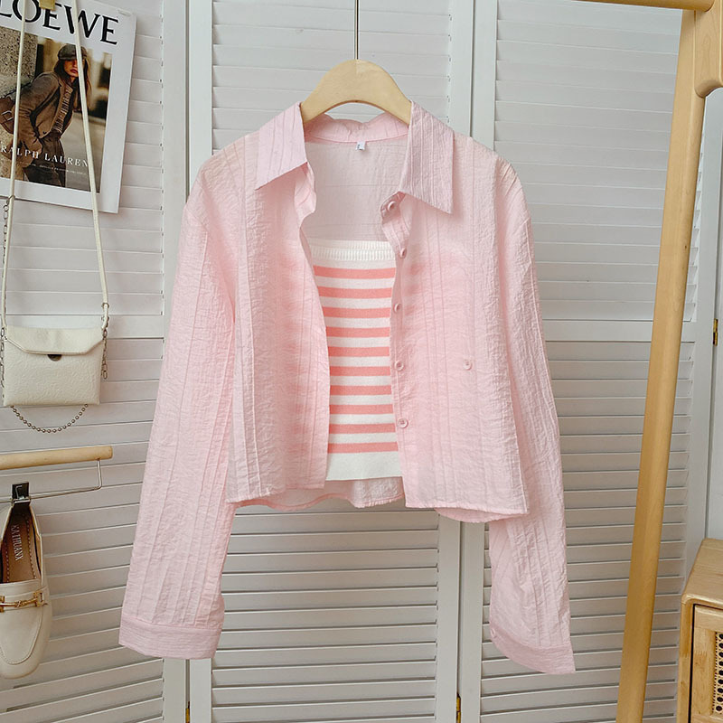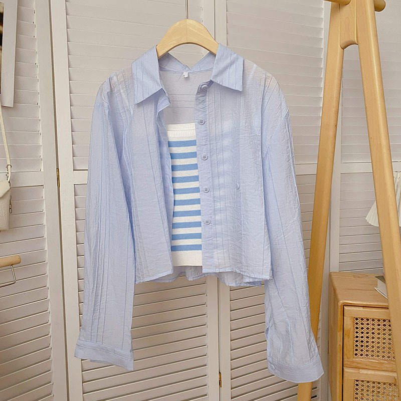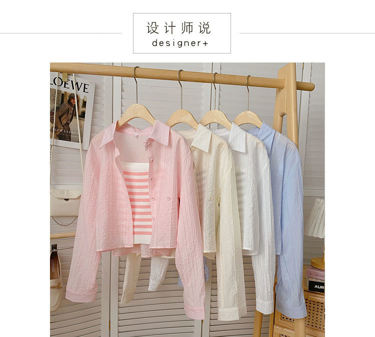 夏装韩版薄款长袖上衣女防晒衣设计感短款开衫宽松百搭小清新衬衣
