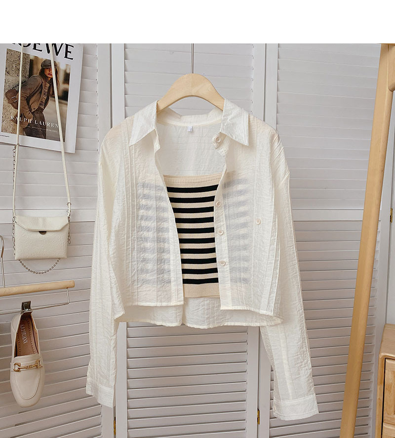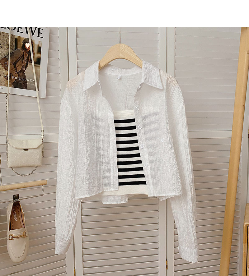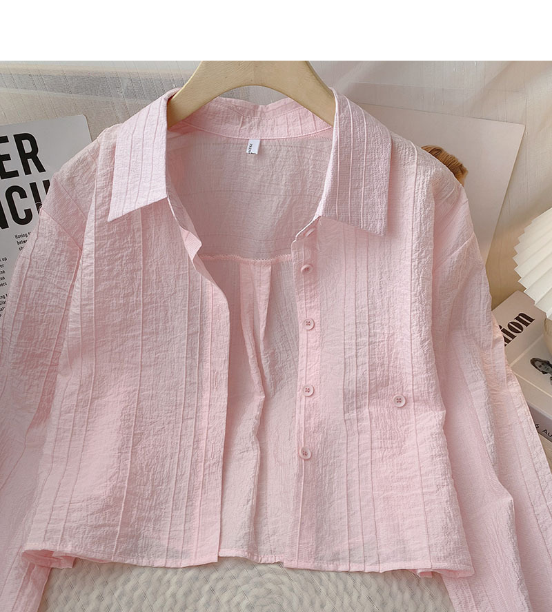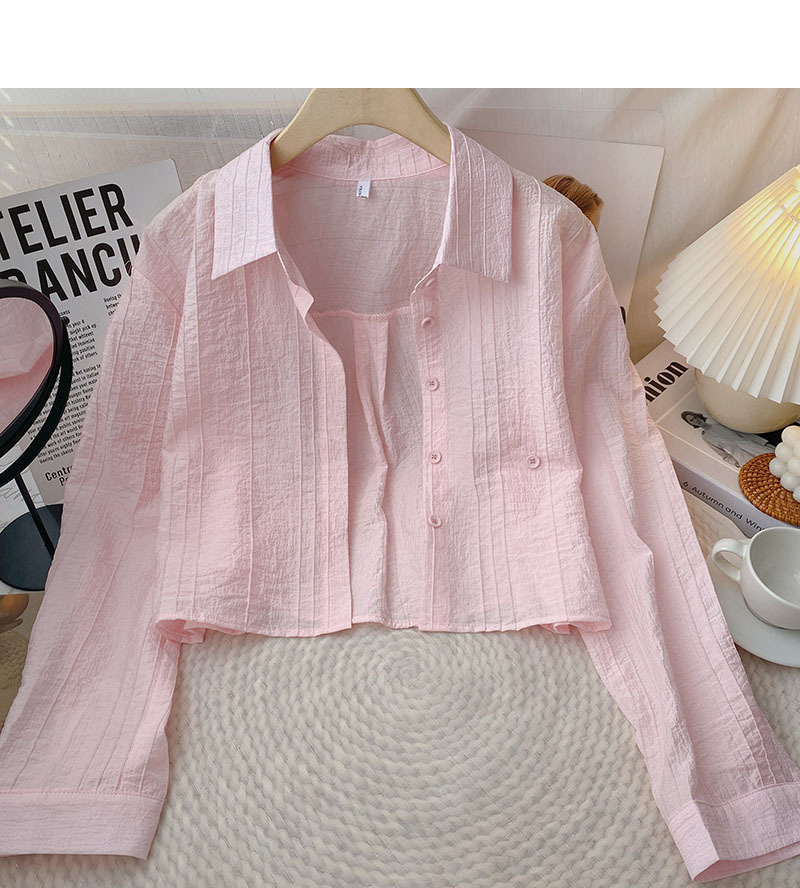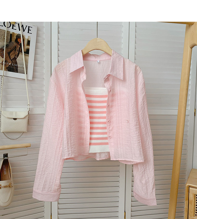 夏装韩版薄款长袖上衣女防晒衣设计感短款开衫宽松百搭小清新衬衣