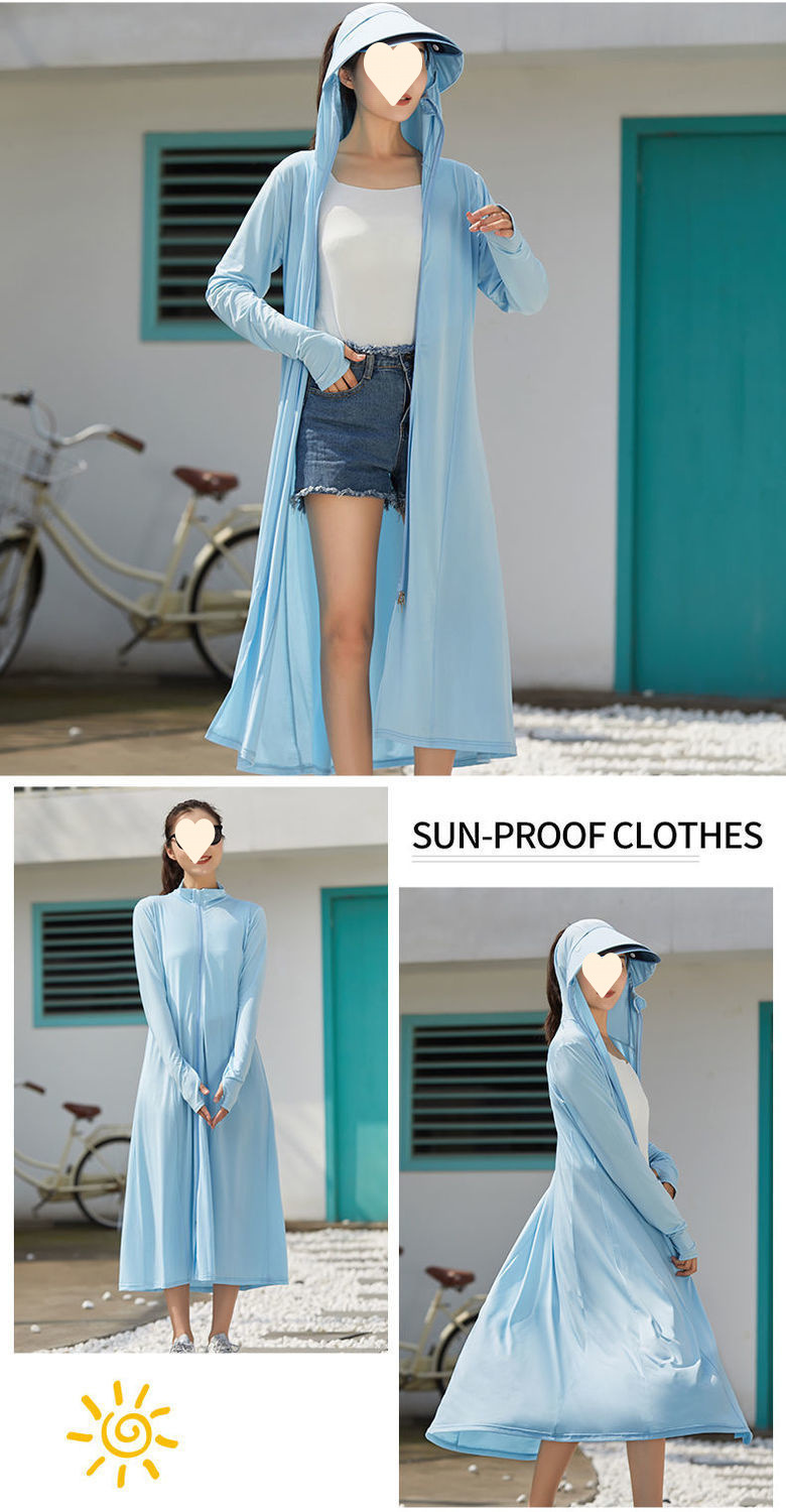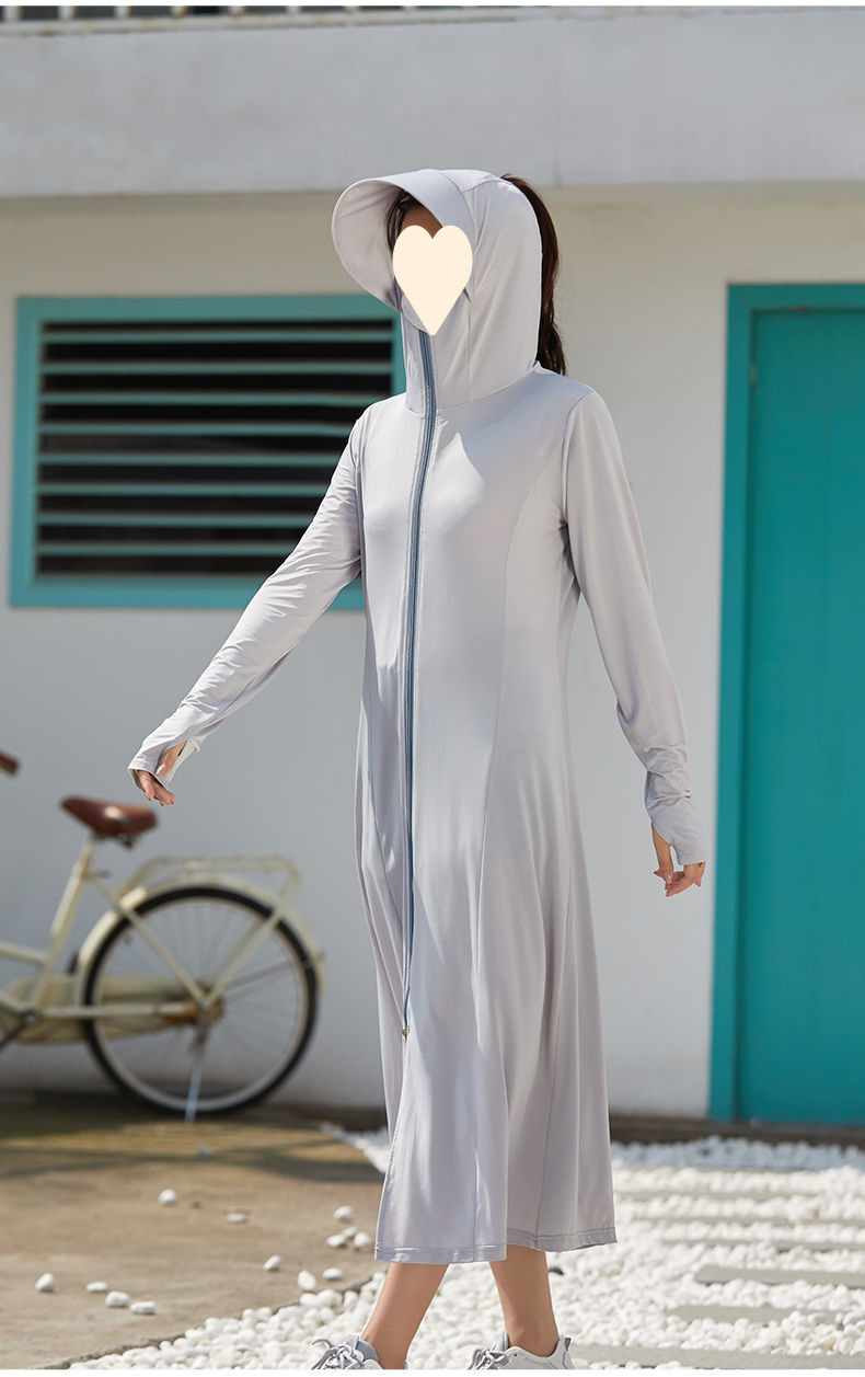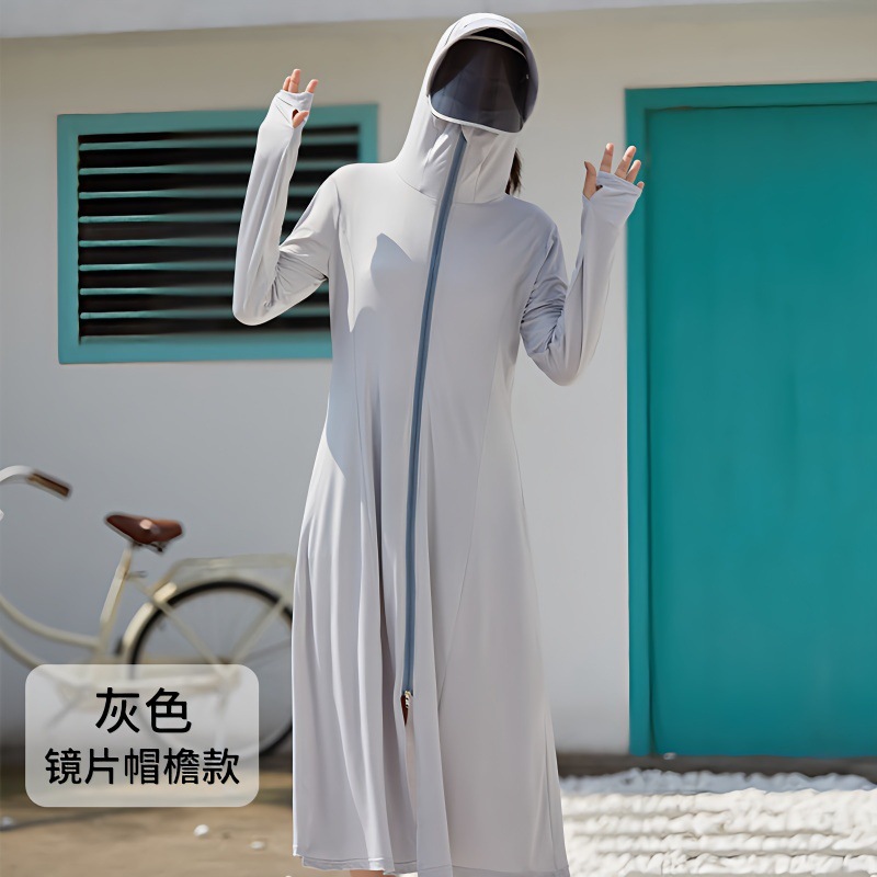 防晒衣女夏季薄款长款高挡中冰丝过膝超长骑车防紫外线新款防晒服