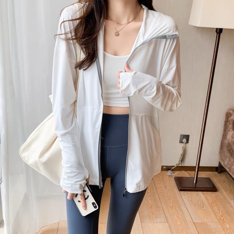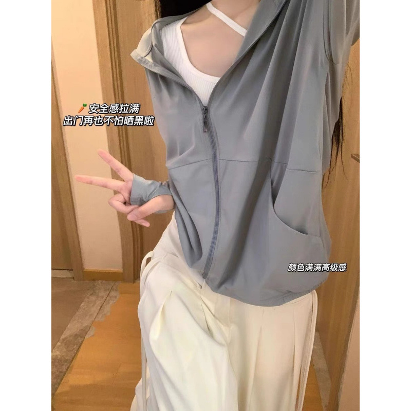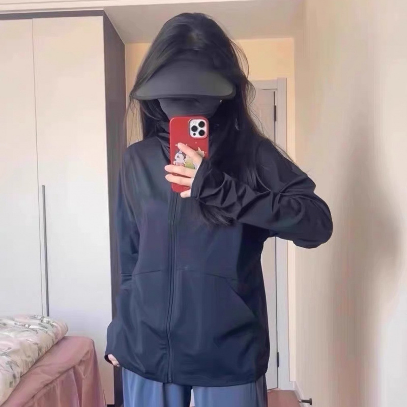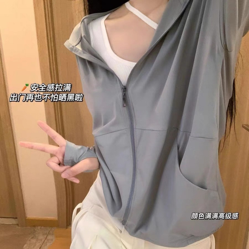 冰丝防晒衣女夏季透气防紫外线长袖超薄款罩衫外套骑车带帽防晒服