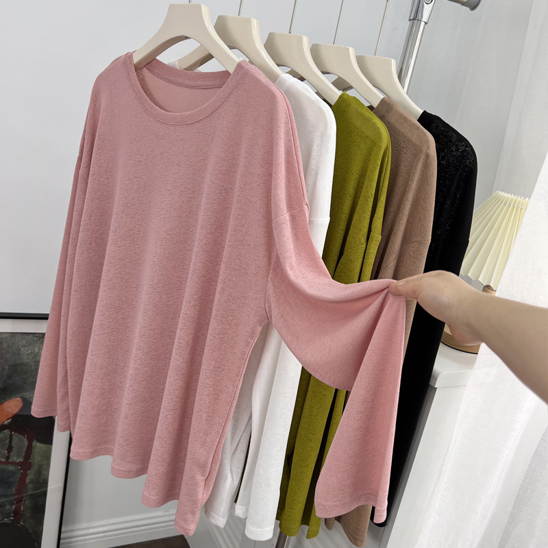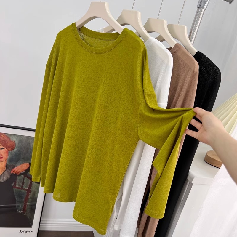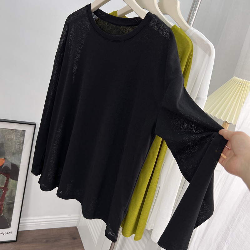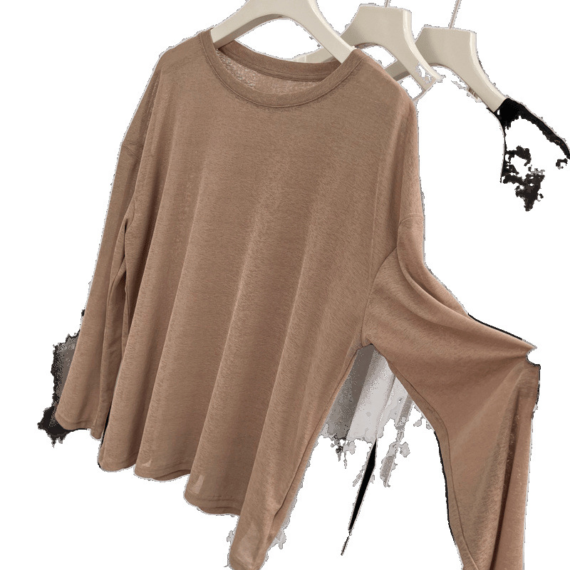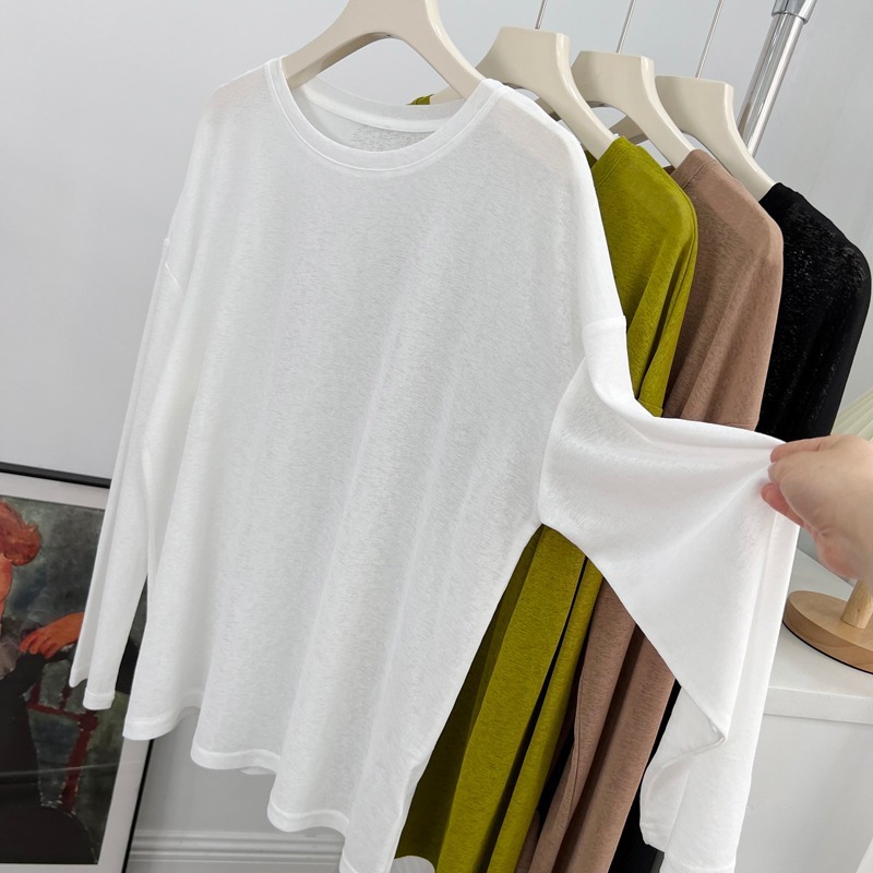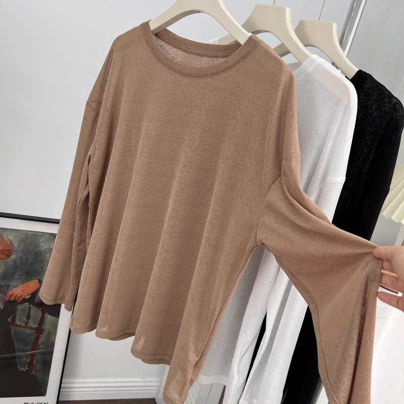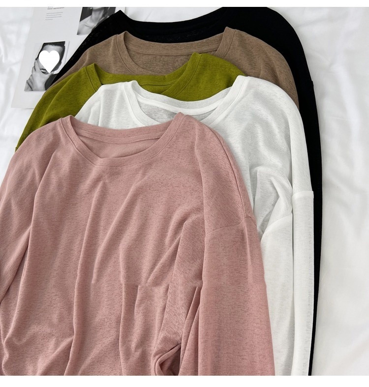 薄款冰丝防晒长袖T恤女2025夏季新款宽松百搭透气外穿罩衫上衣服