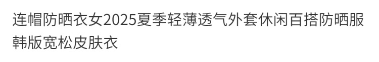 连帽防晒衣女2025夏季轻薄透气外套休闲百搭防晒服韩版宽松皮肤衣