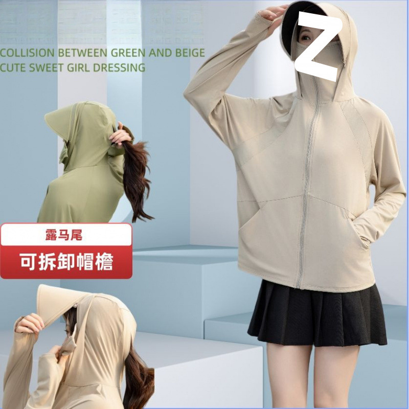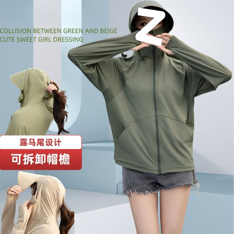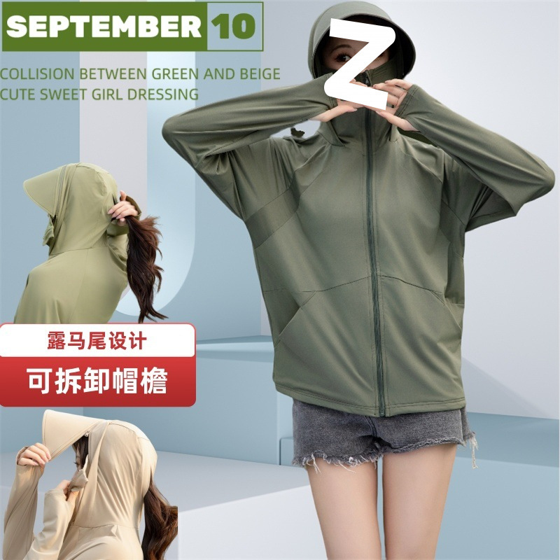 2025夏季冰丝防紫外线薄款防晒衣UPF50+遮阳透气外套可拆卸帽沿