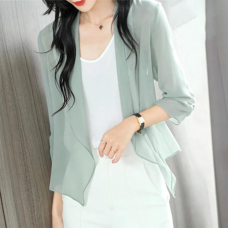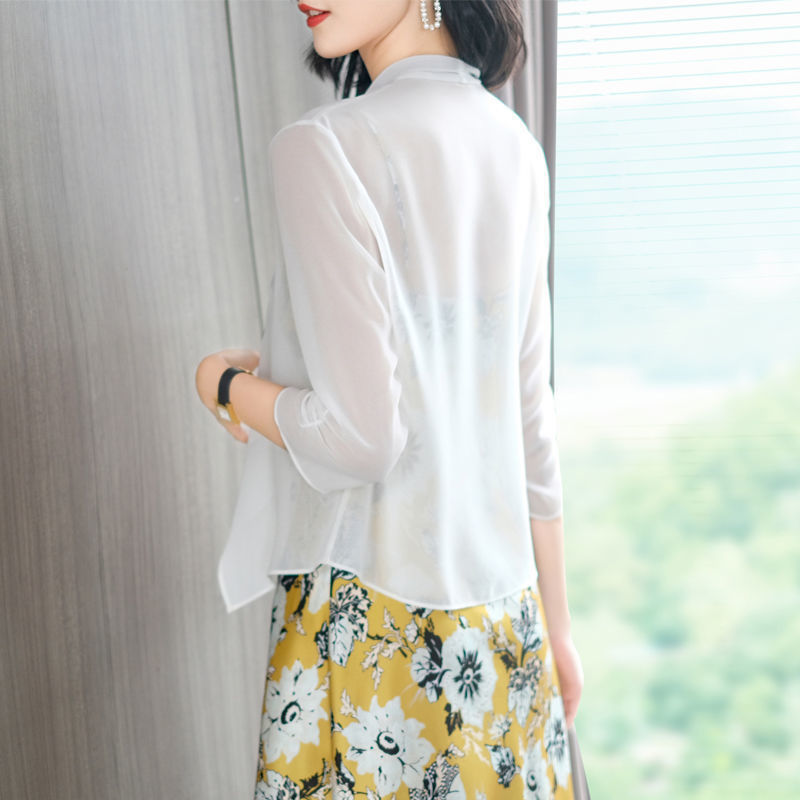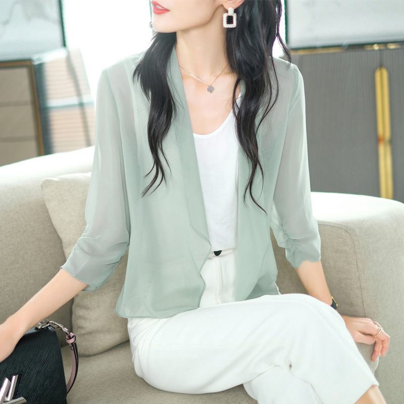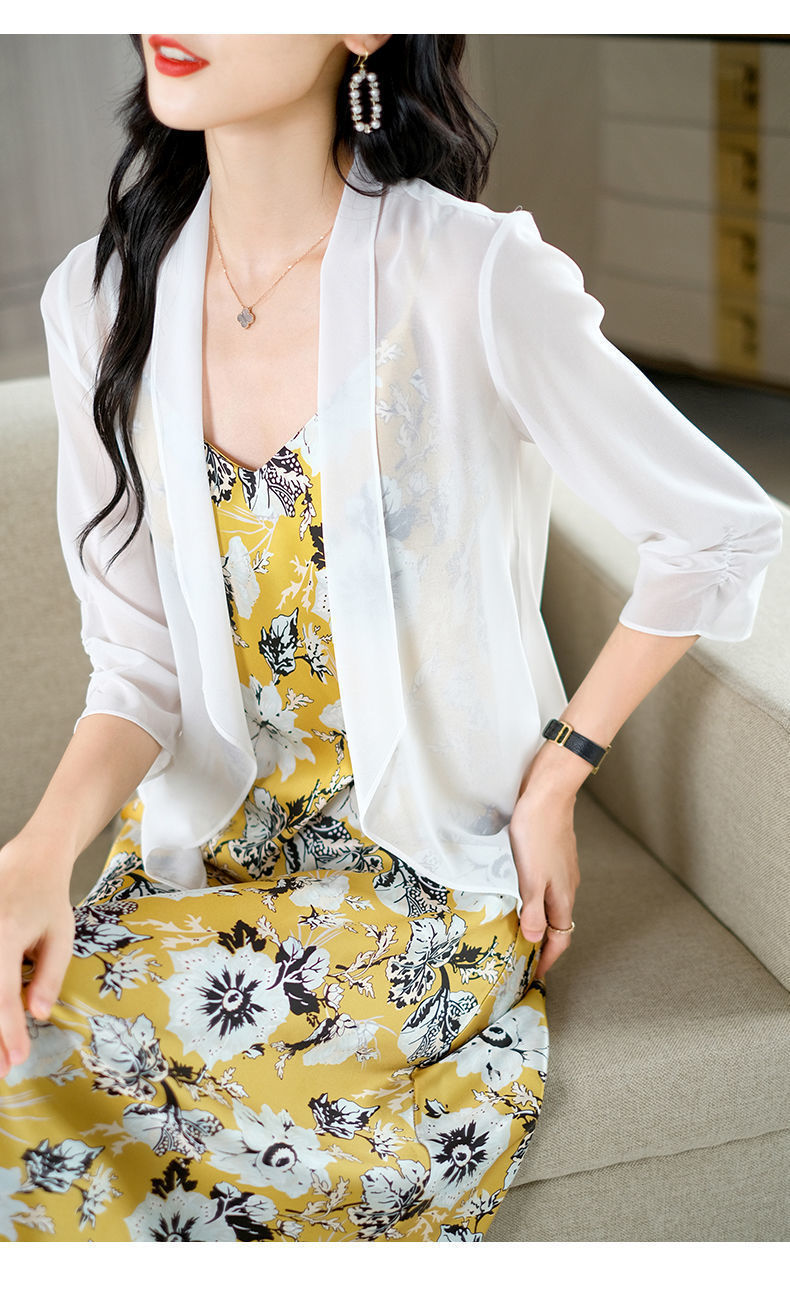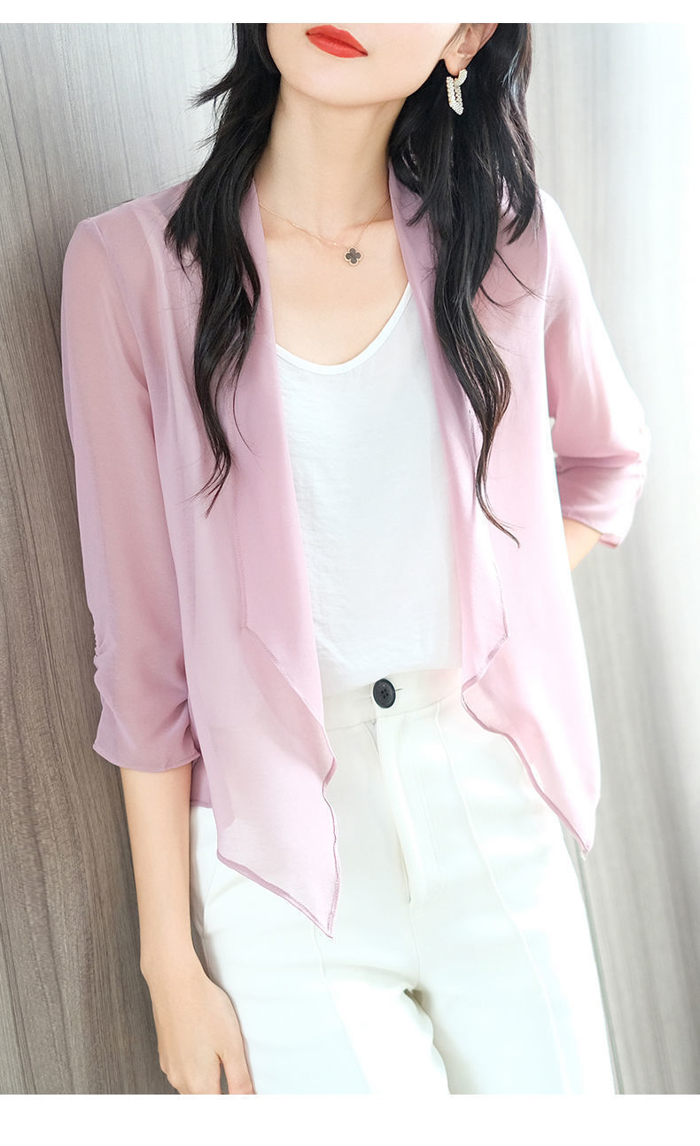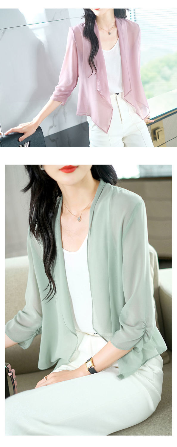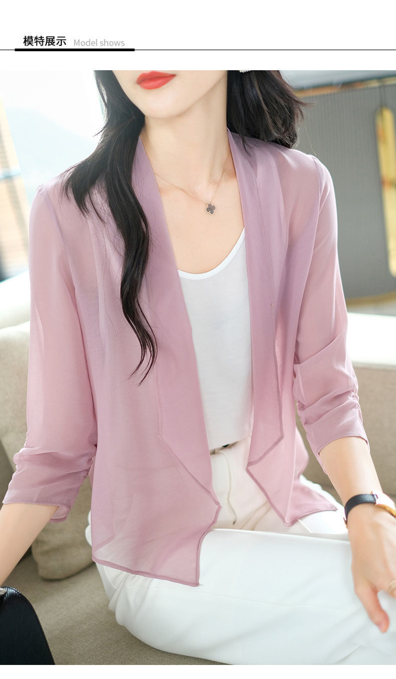 雪纺披肩外套女2025夏季新款洋气薄款宽松开衫上衣外搭短款防晒衣