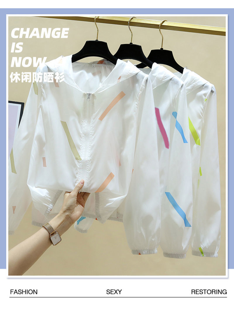 带帽防晒衣女2025新款夏宽松大码防晒衫印花长袖薄款外套防嗮服潮