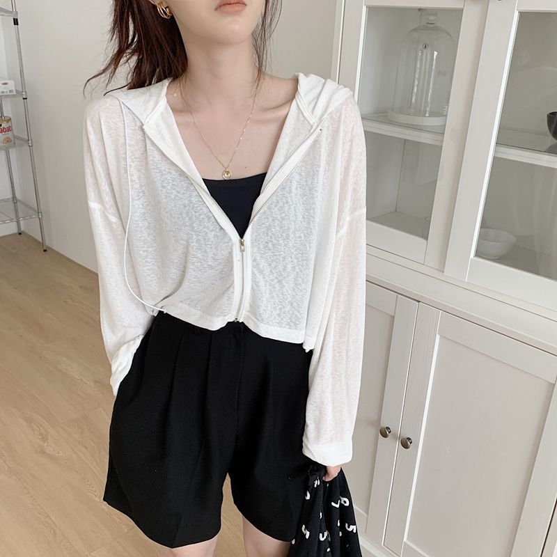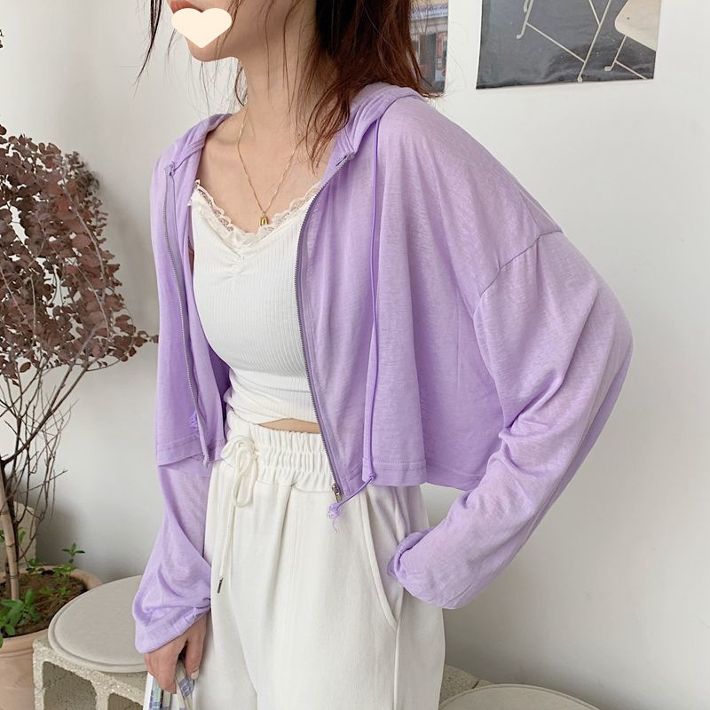 防晒开衫外套女披肩新款薄款夏季长袖连帽宽松衣服短款上衣跨境