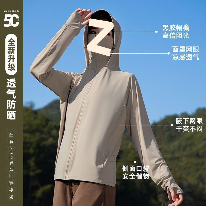 2025夏季女士可拆黑胶帽檐防晒衣户外防紫外线宽松薄款冰丝防晒服