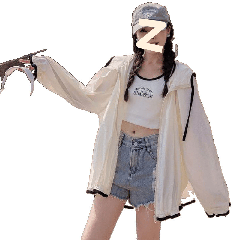 2025新款时尚连帽防晒衣女夏季长袖薄款外套韩版宽松透气防晒服女