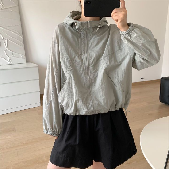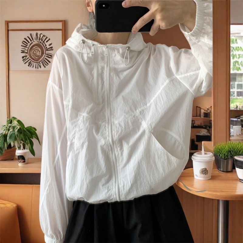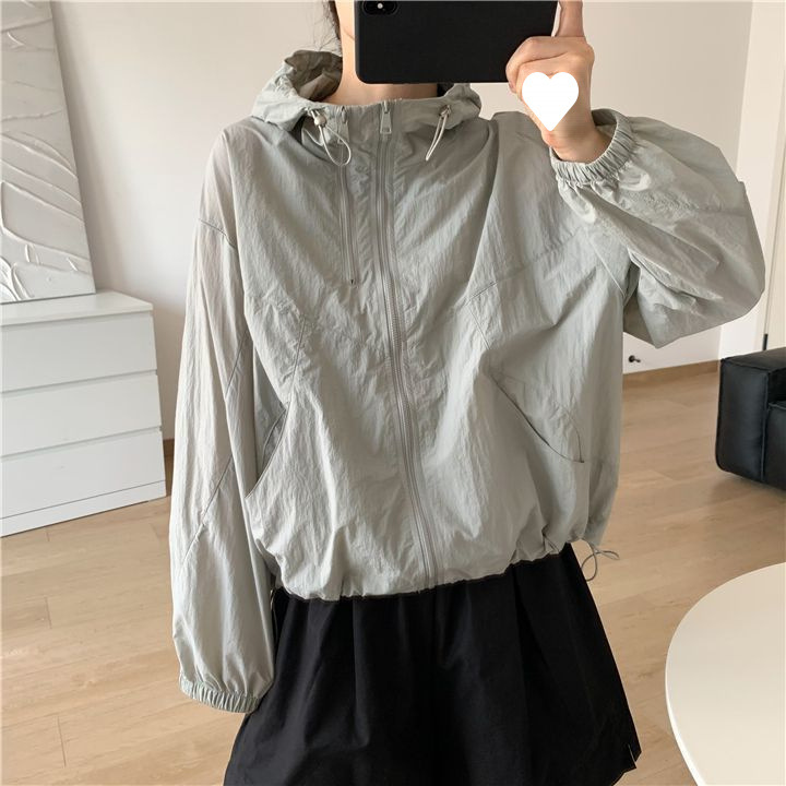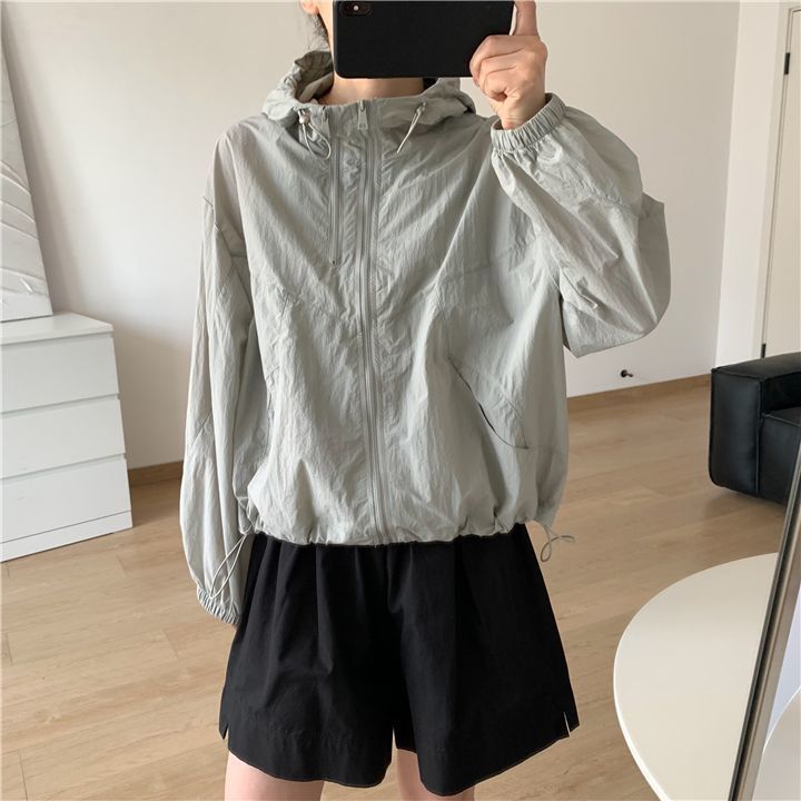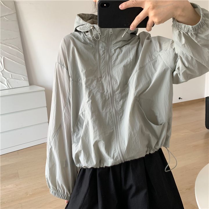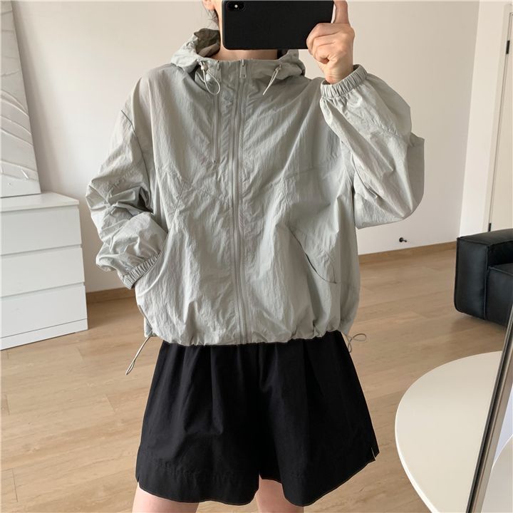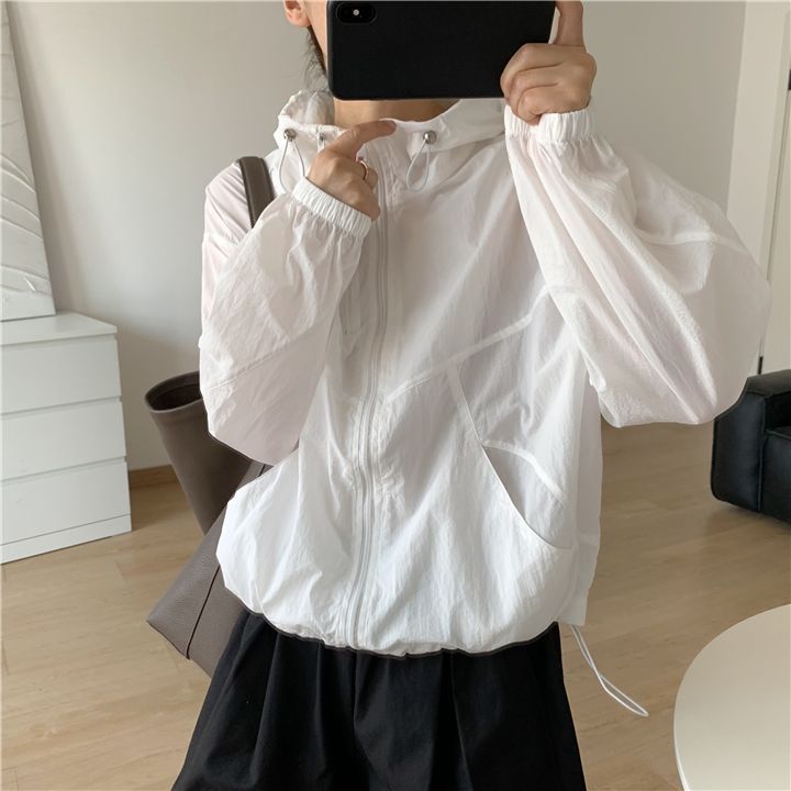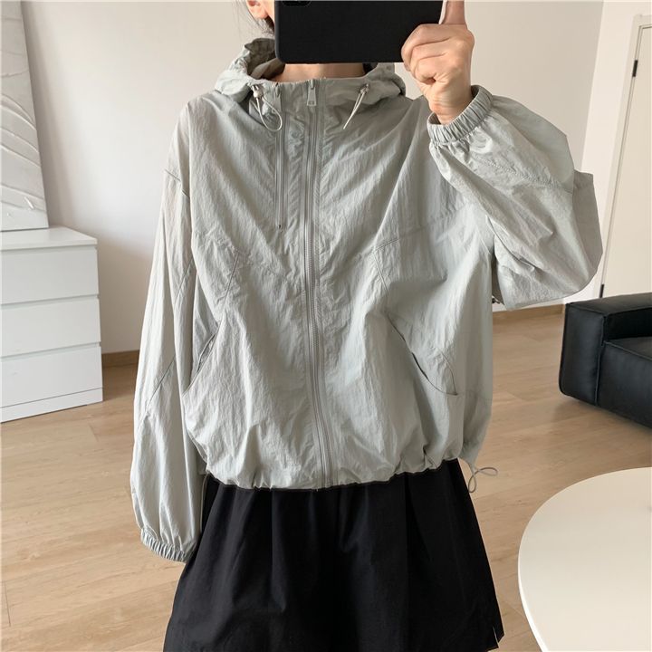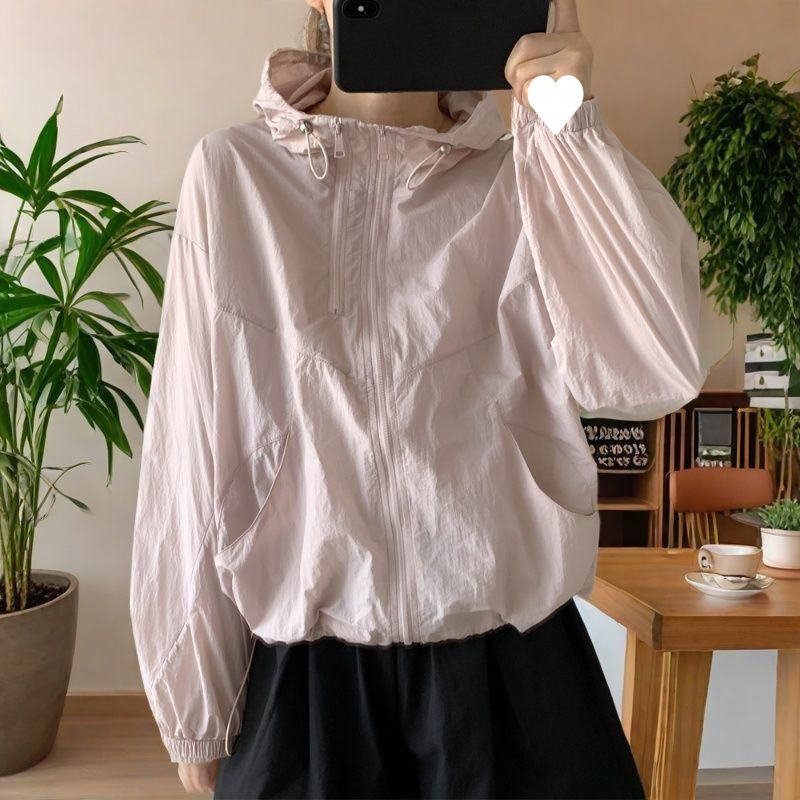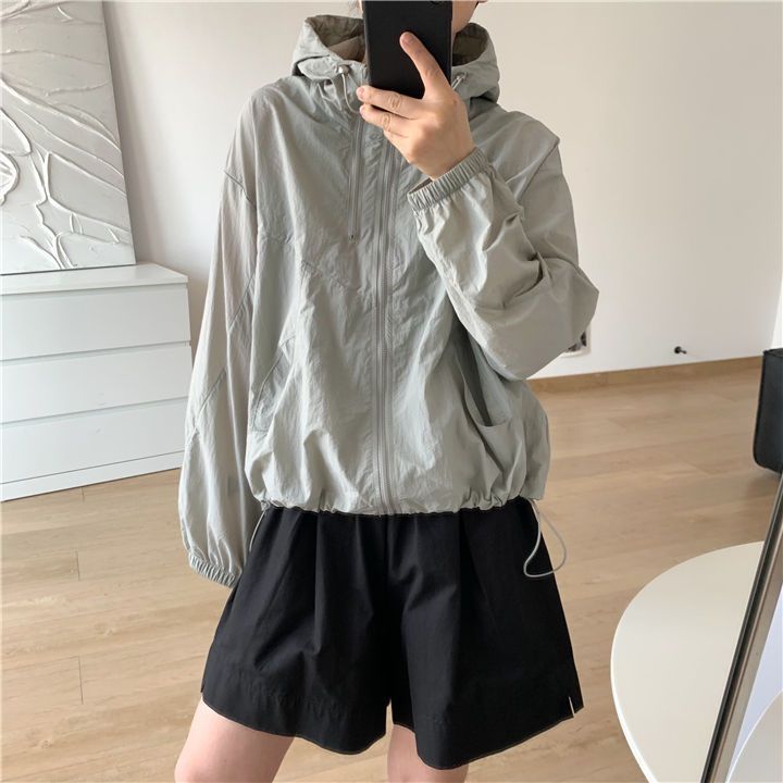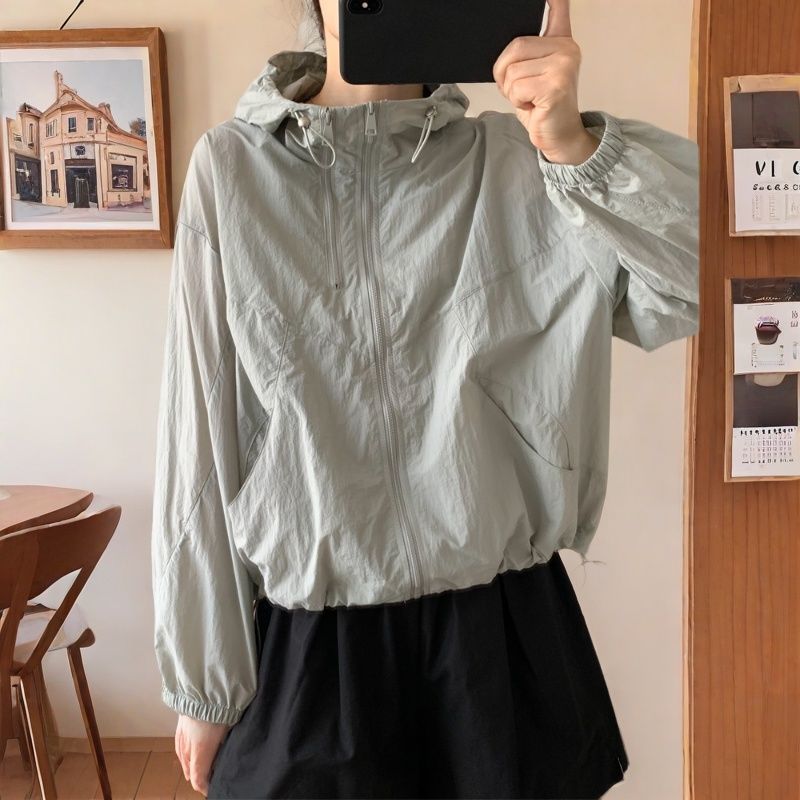 夏季新款凉感速干连帽休闲防晒衣女韩系宽松百搭纯色拉链薄款外套