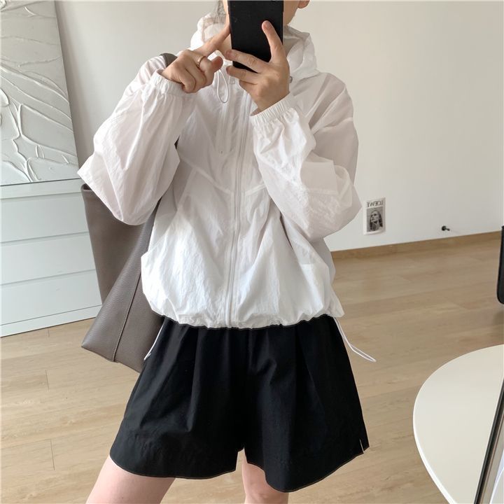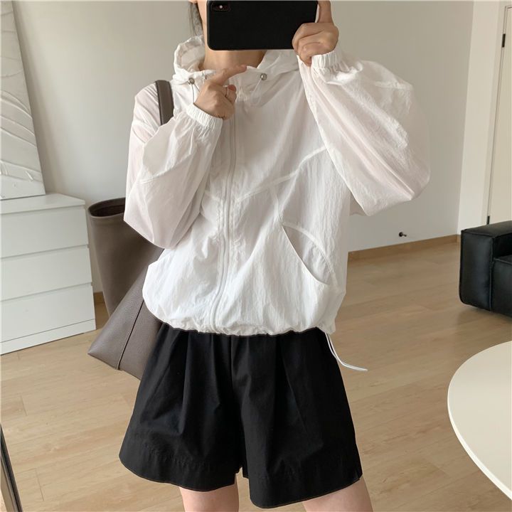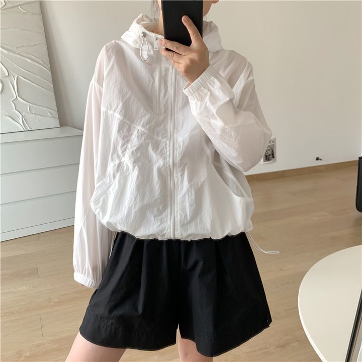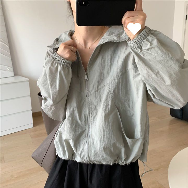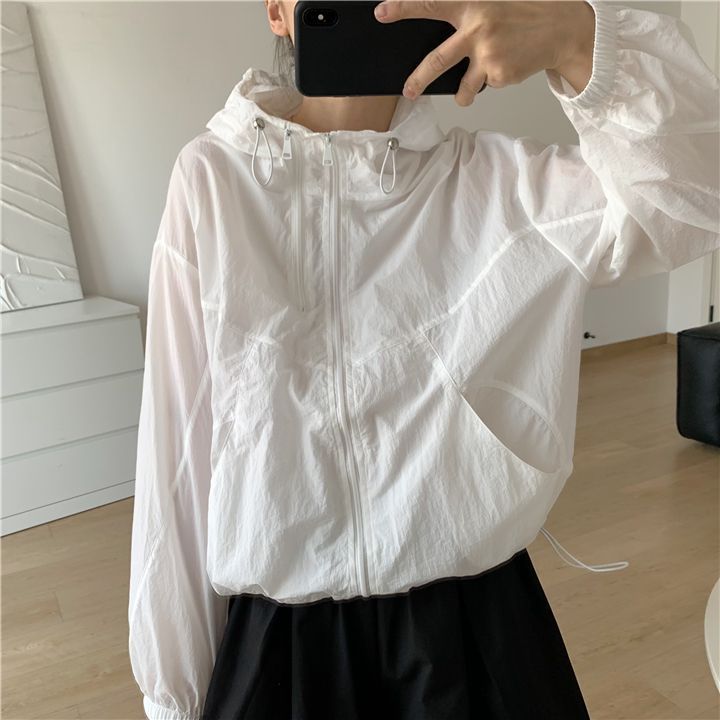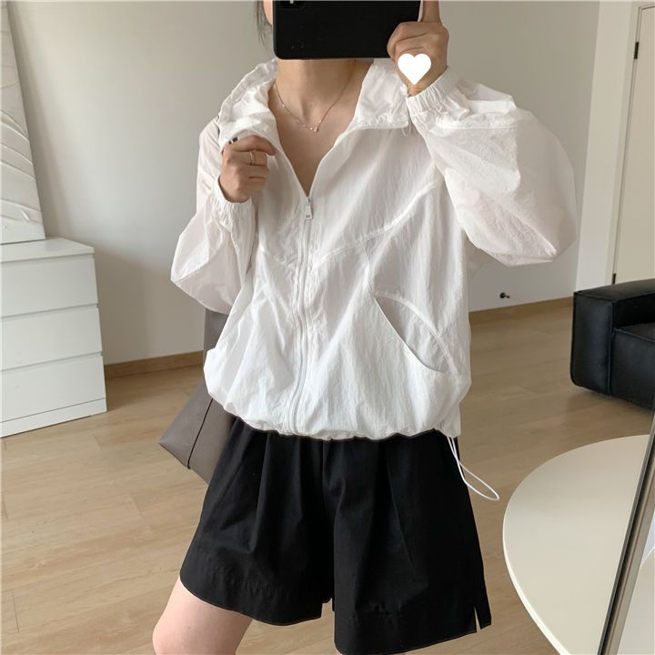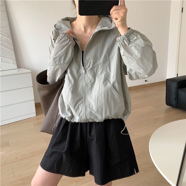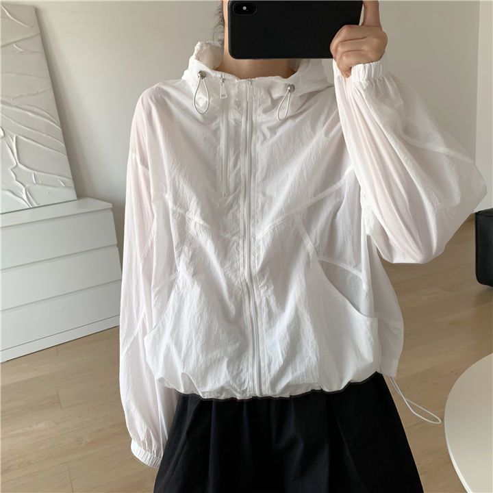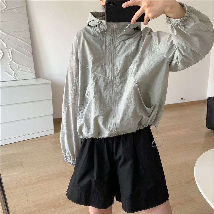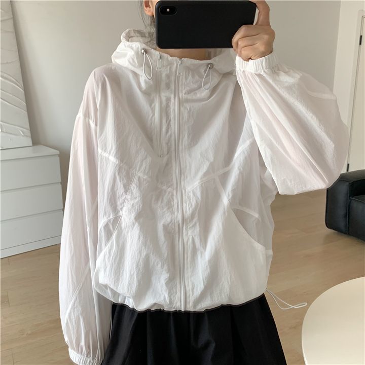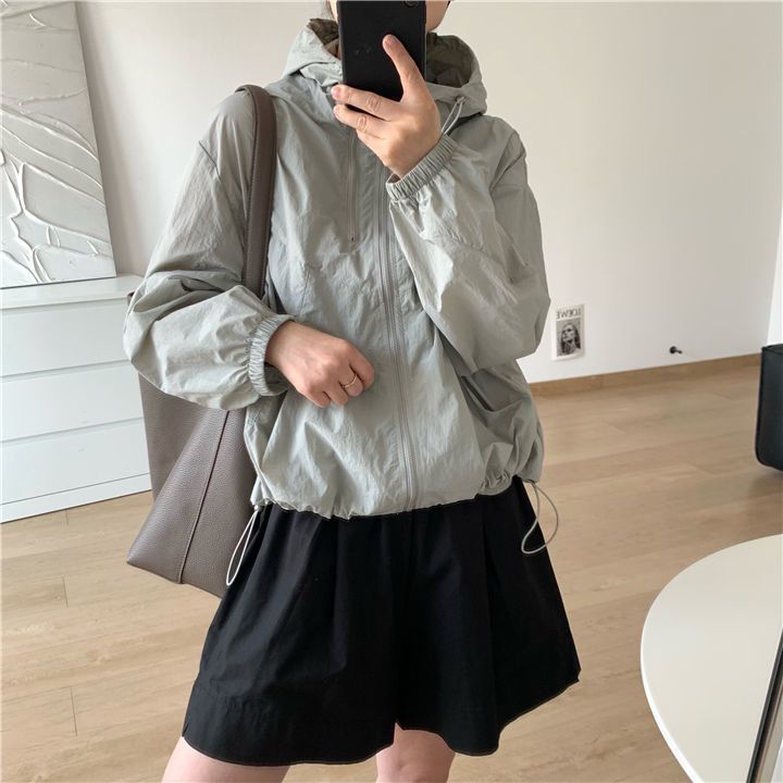 夏季新款凉感速干连帽休闲防晒衣女韩系宽松百搭纯色拉链薄款外套