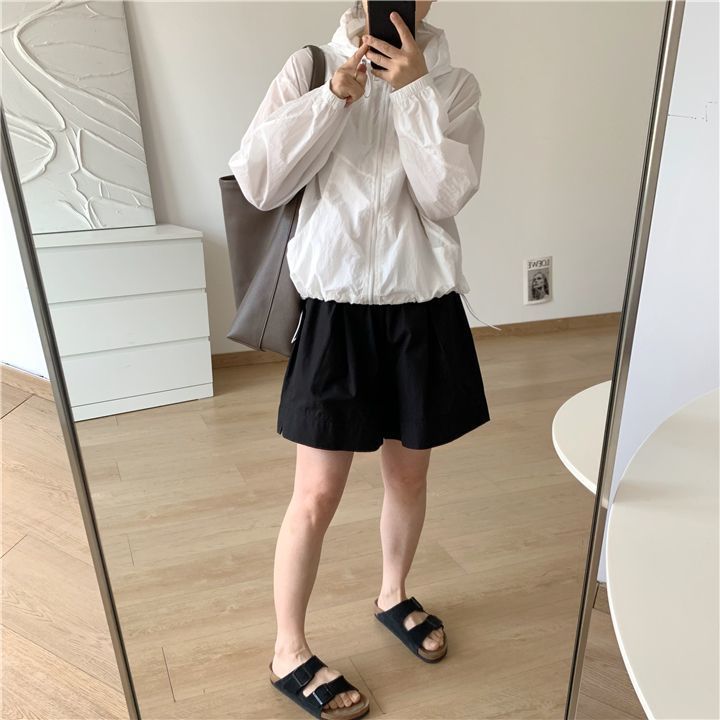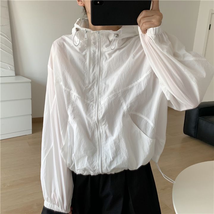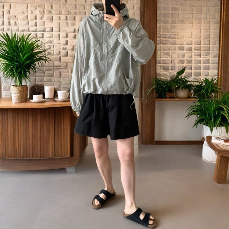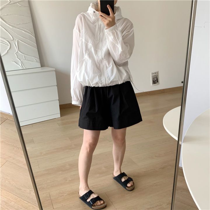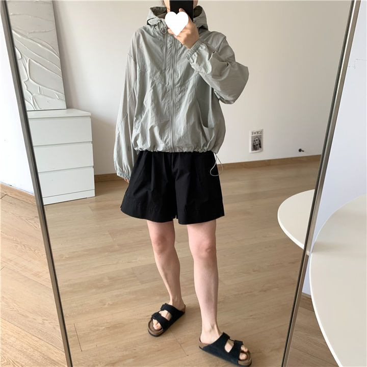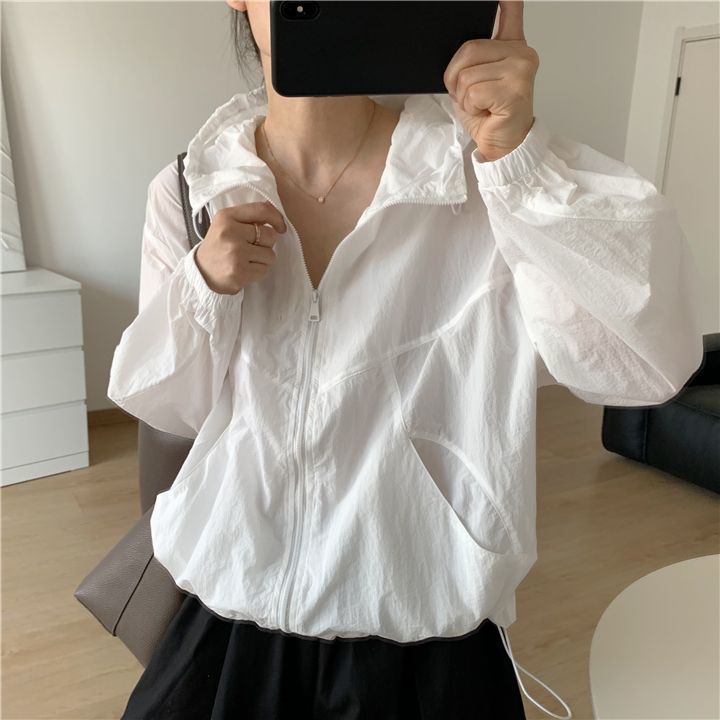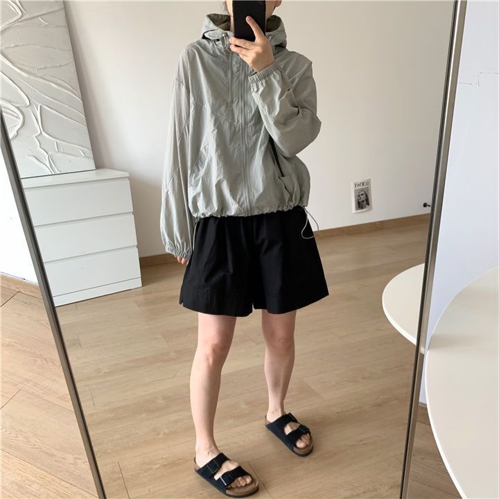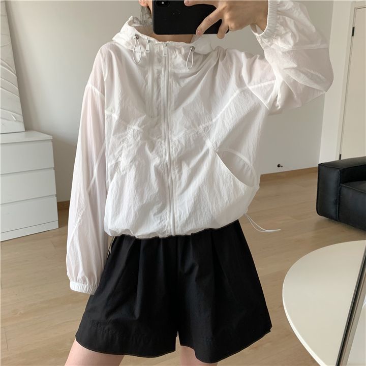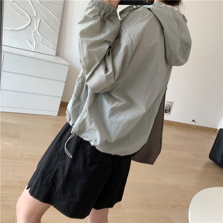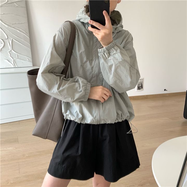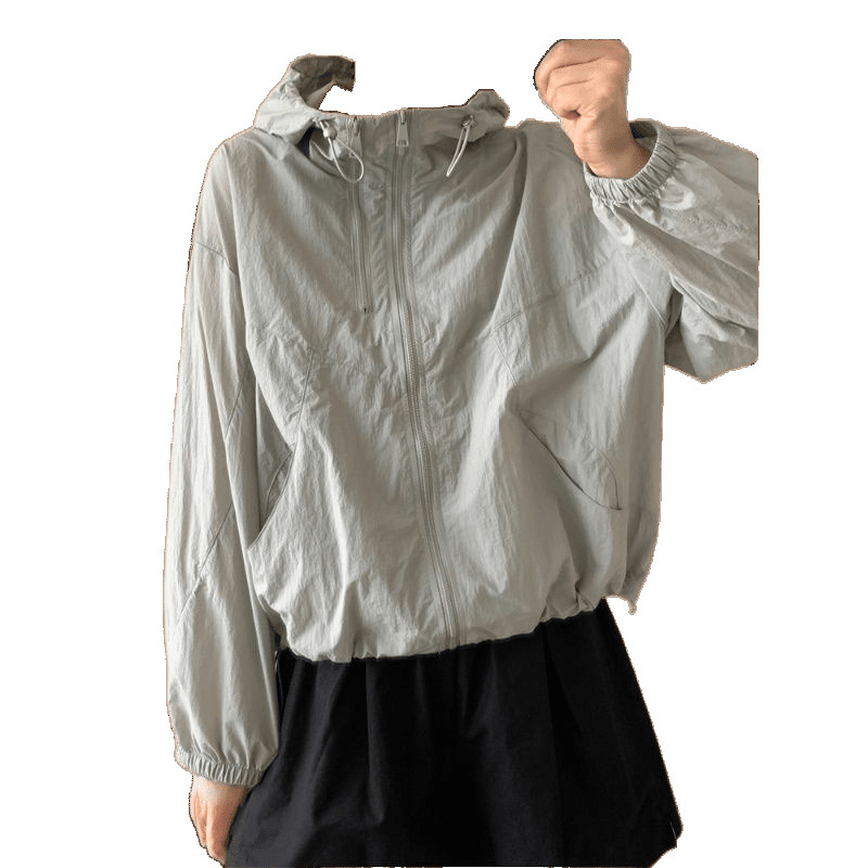 夏季新款凉感速干连帽休闲防晒衣女韩系宽松百搭纯色拉链薄款外套