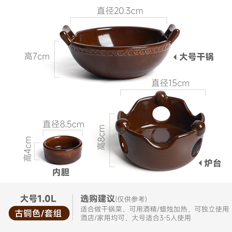 陶煲王陶瓷砂锅干锅锅具家用耐高温干烧不裂饭店专用酒精炉小火锅