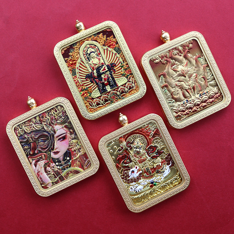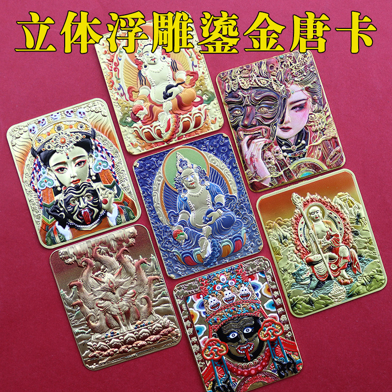 五爷文殊立体浮雕铜卡本命佛扎基拉姆前世今生狐仙立体鎏金唐卡
