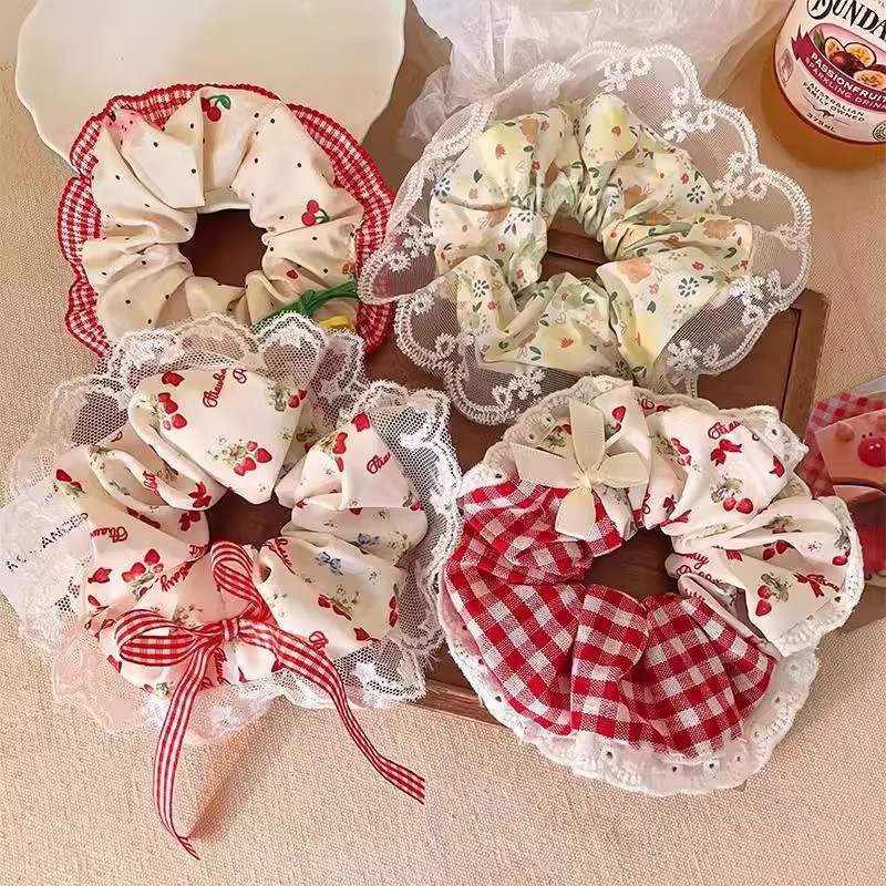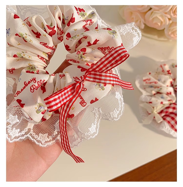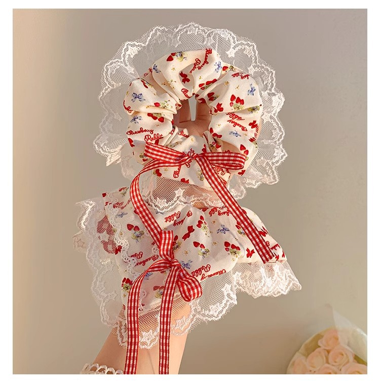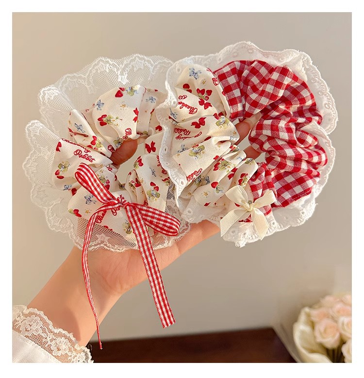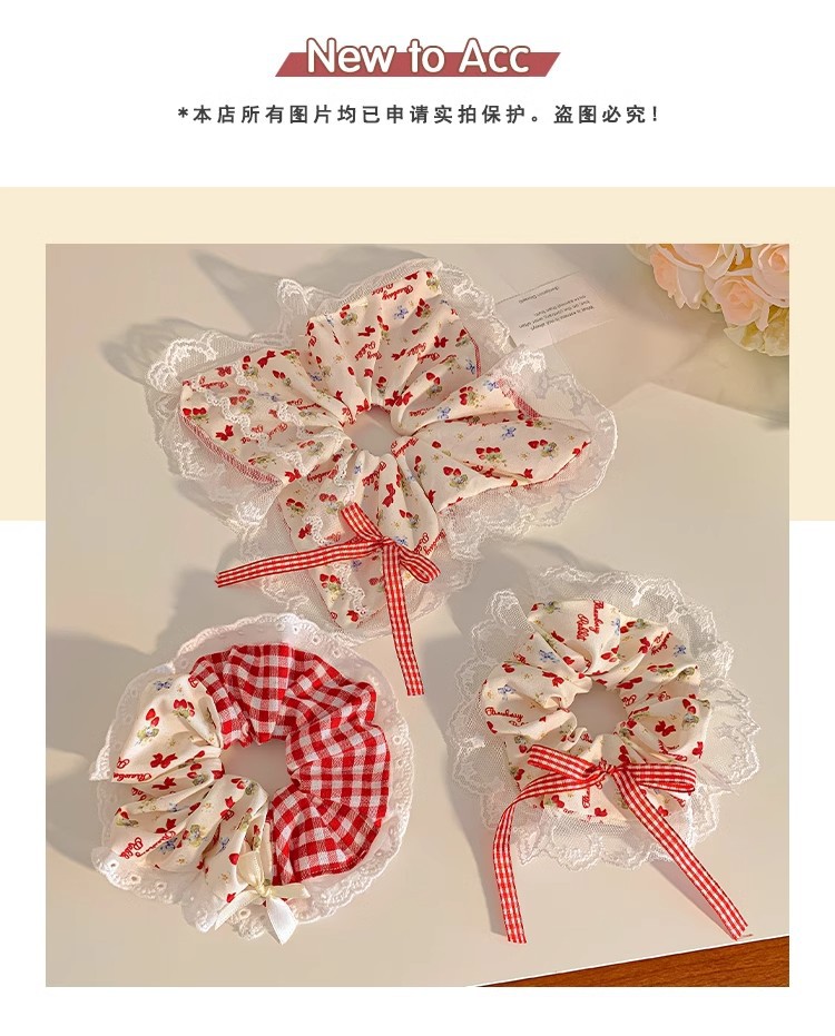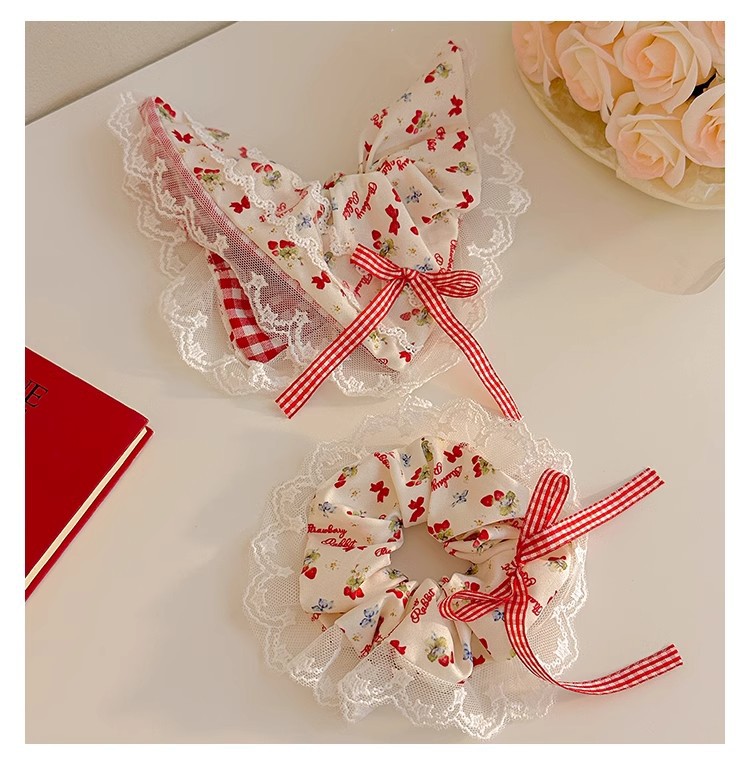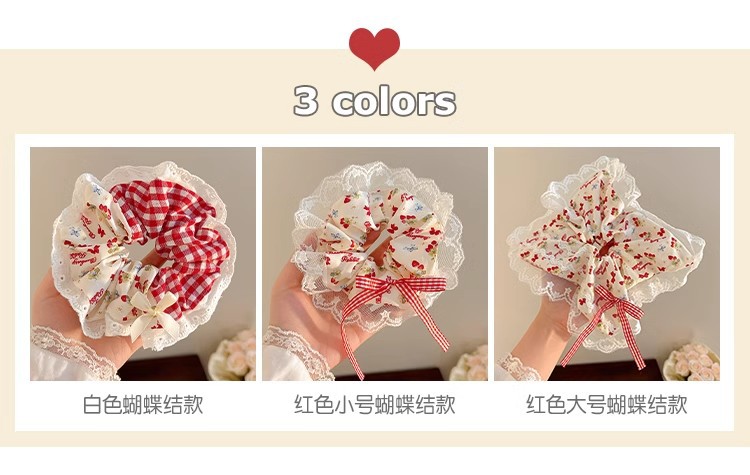 小清新碎花大肠发圈女蕾丝发绳蝴蝶结芭蕾风格纹头绳发饰摆摊批货