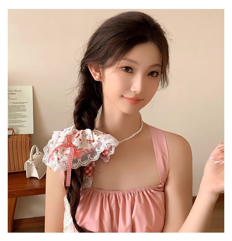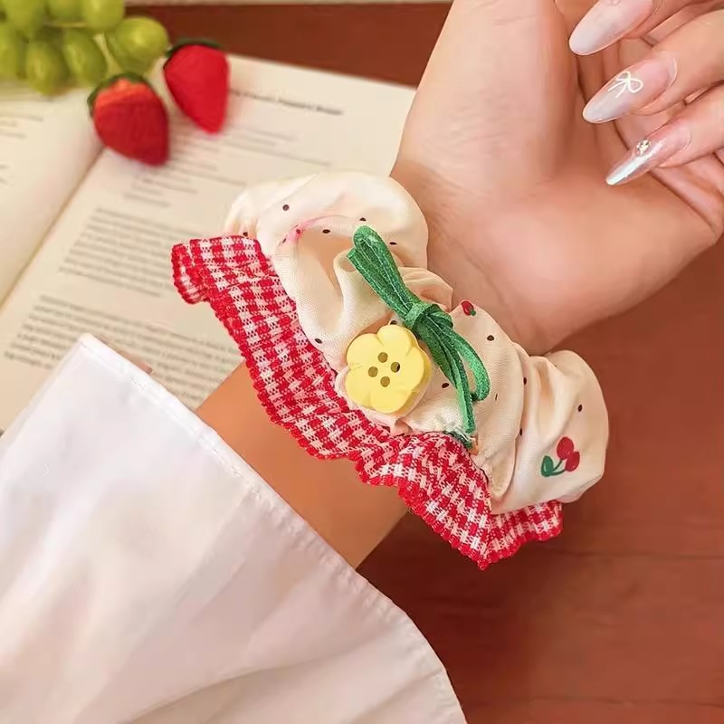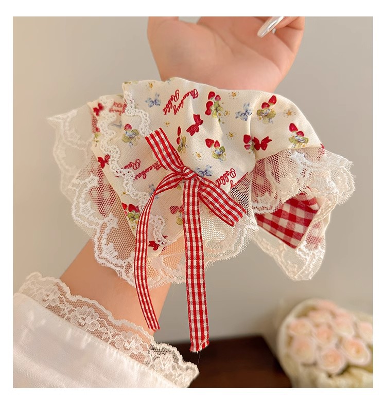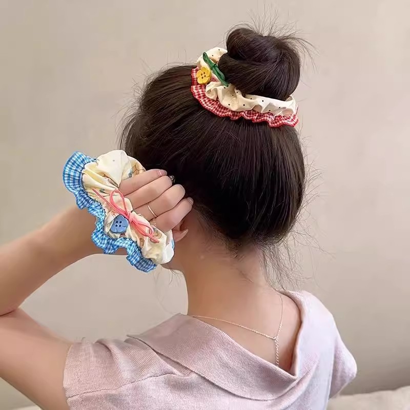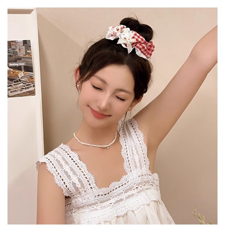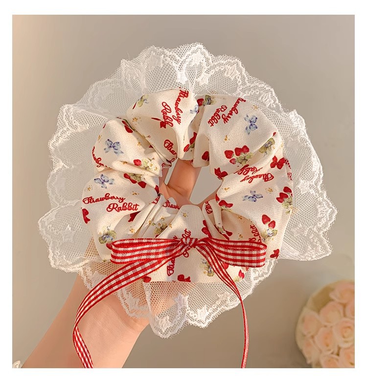 小清新碎花大肠发圈女蕾丝发绳蝴蝶结芭蕾风格纹头绳发饰摆摊批货