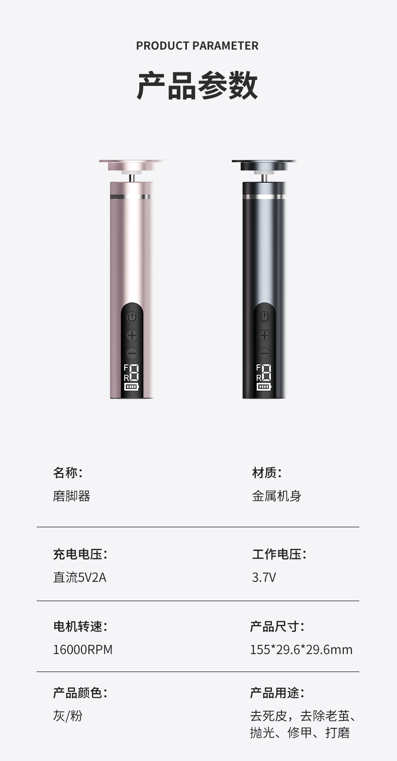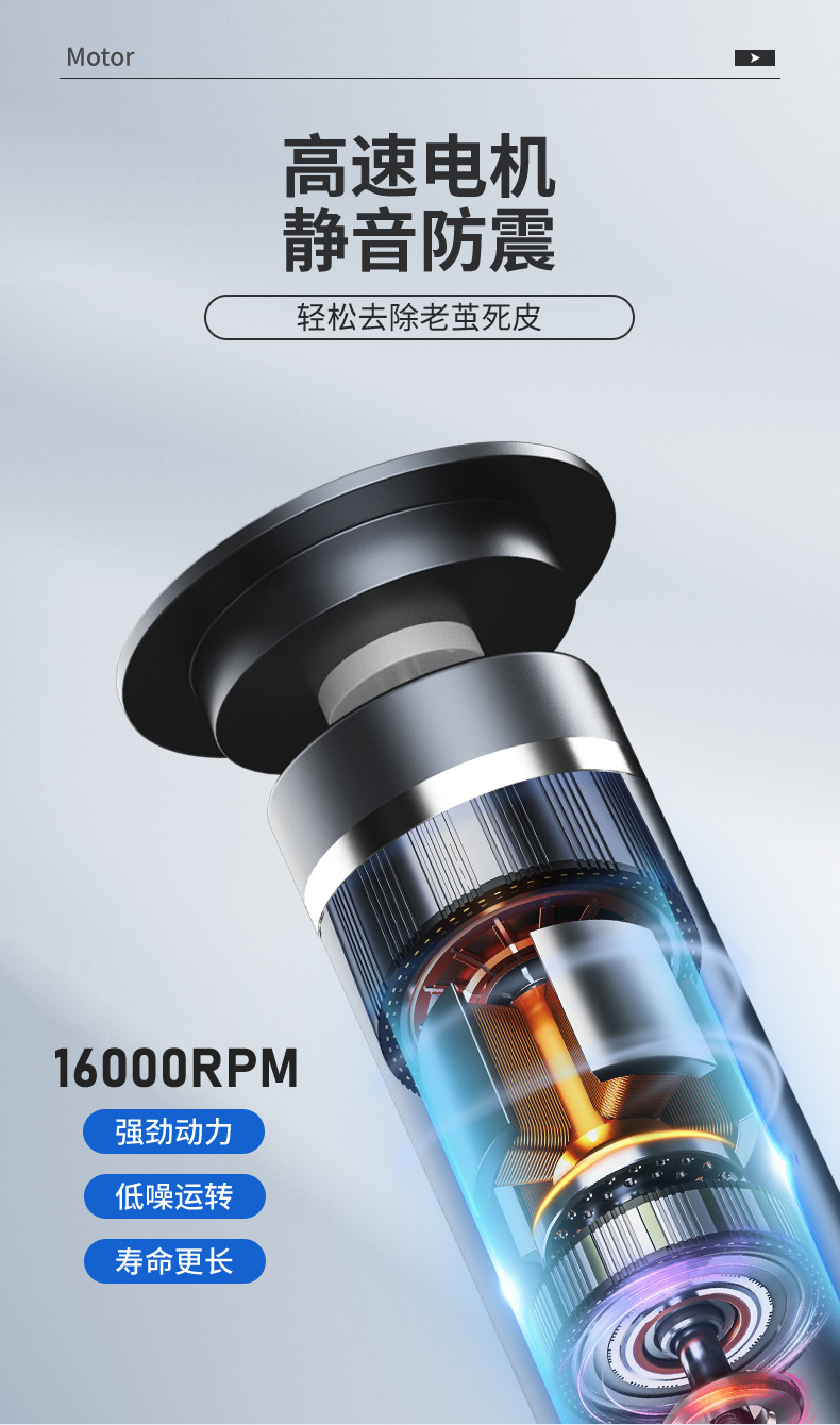 跨境新款电动磨脚器数显充电式全身水洗去死皮老茧吸尘磨皮修脚器