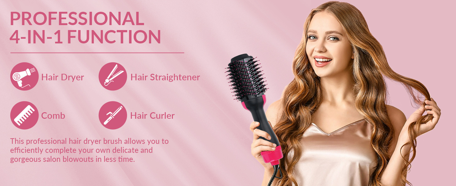 多功能热风梳厂家供销亚马逊跨境二四合一负离子干湿两用电吹风梳