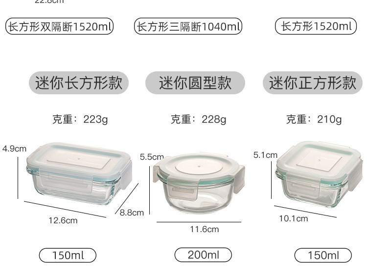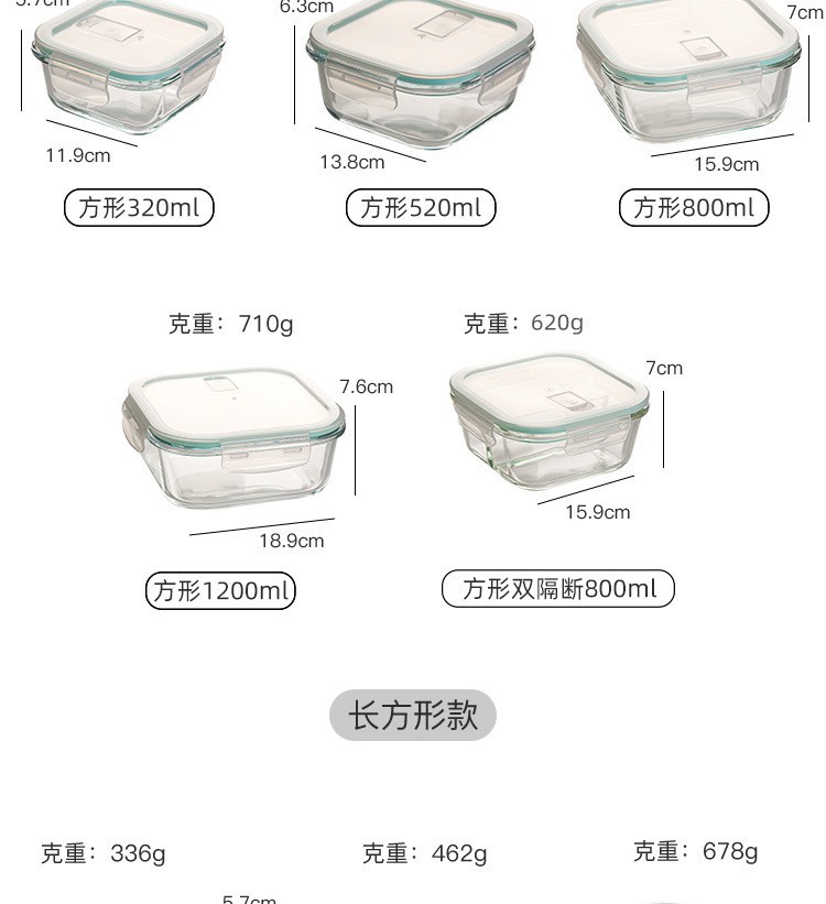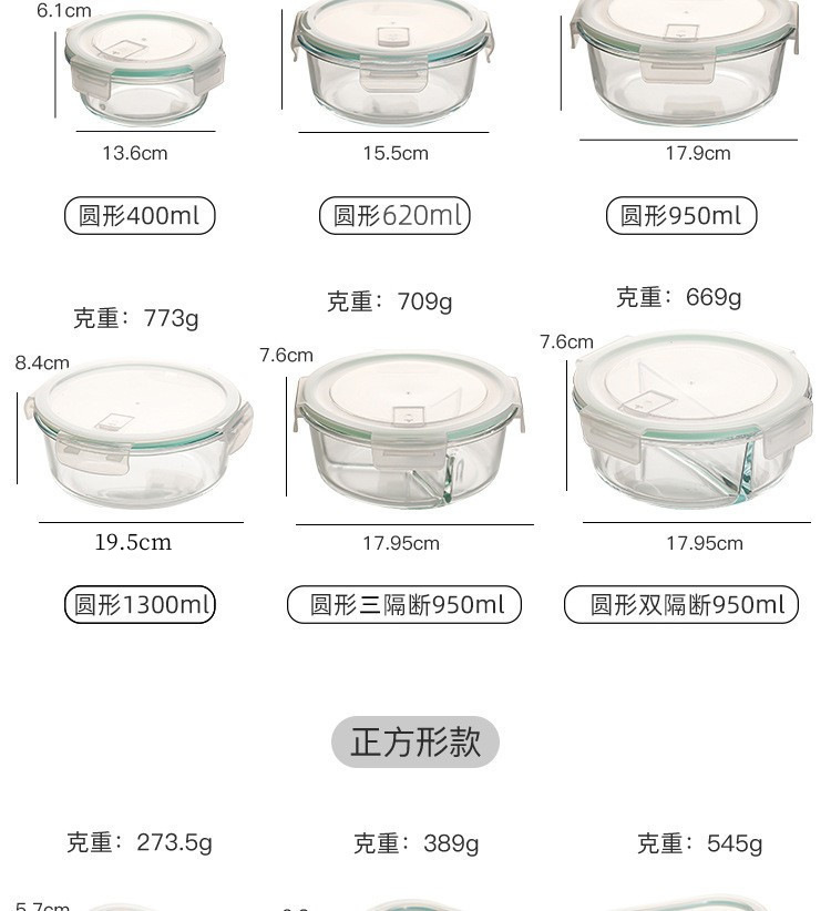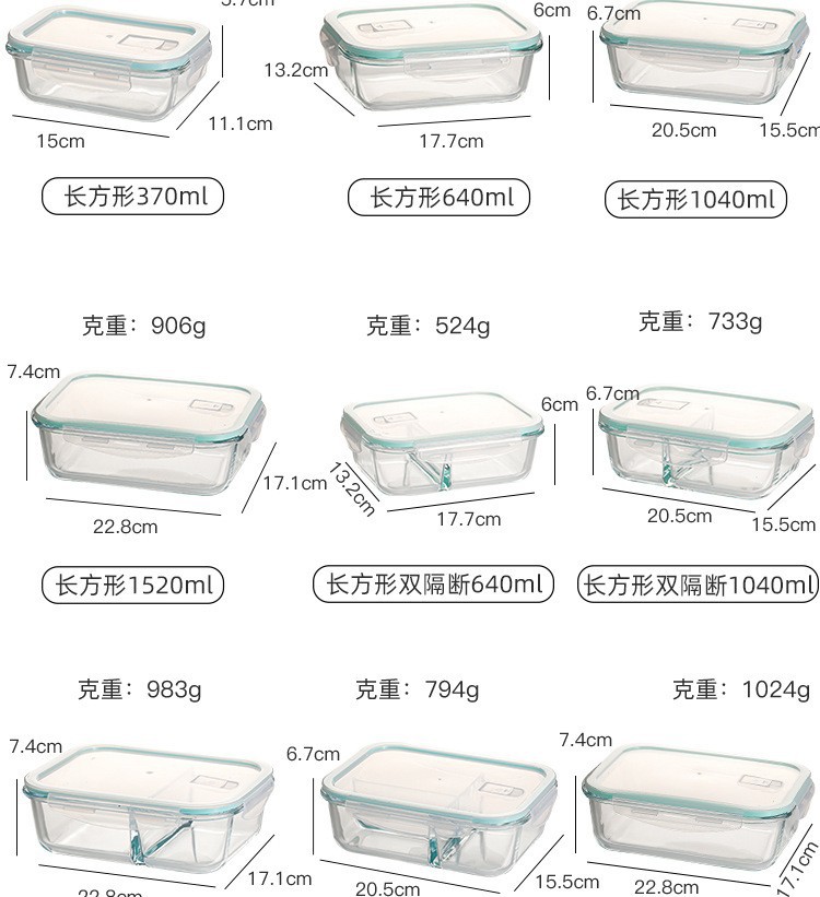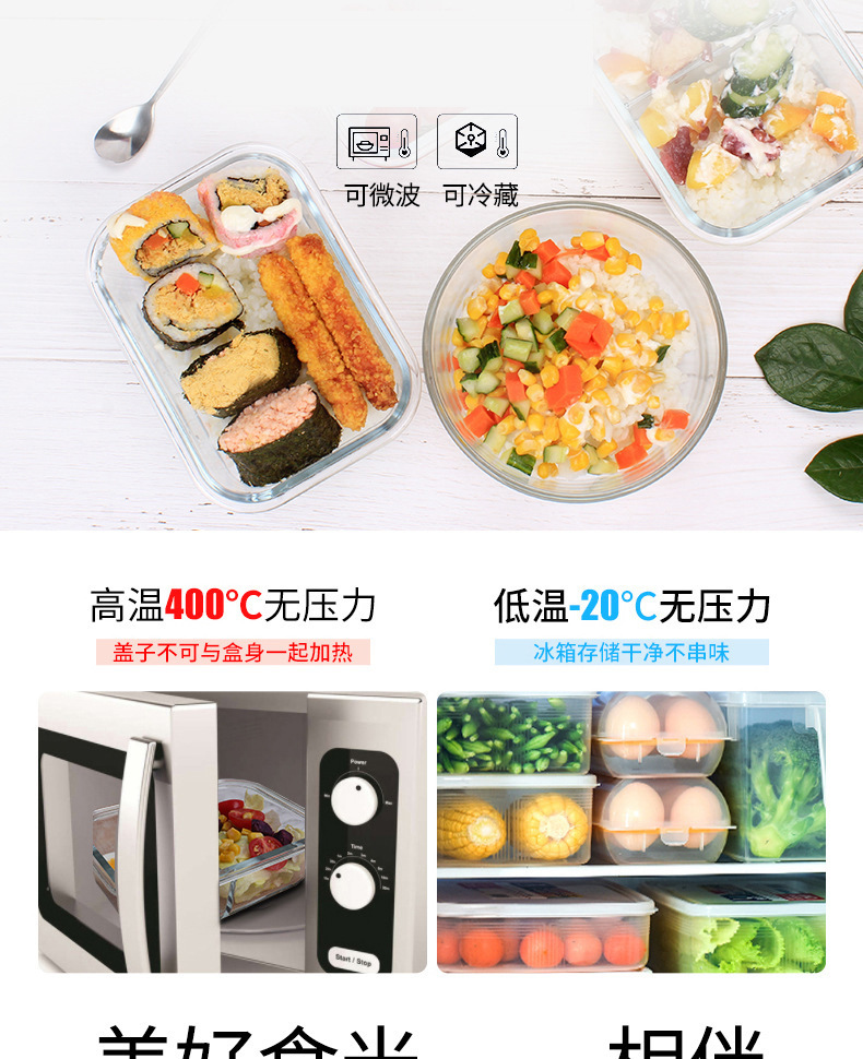 耐热微波炉玻璃饭盒透明玻璃保鲜盒饭盒密封便当冰箱收纳盒玻璃碗