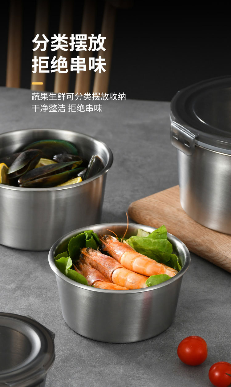 不锈钢圆形保鲜盒乐扣盖食品级冰箱收纳盒露营餐盒家用户外保鲜碗