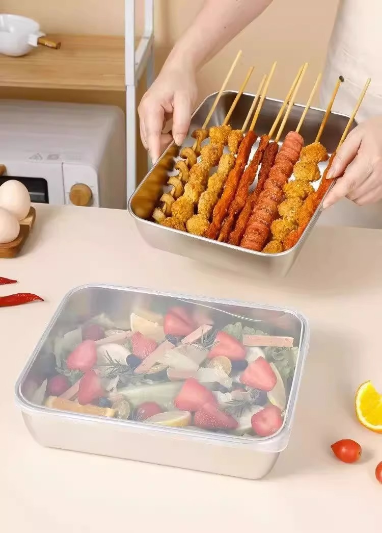 跨境不锈钢保鲜盒微波炉方形饭盒保温盒学生上班族食堂便当盒铁盒