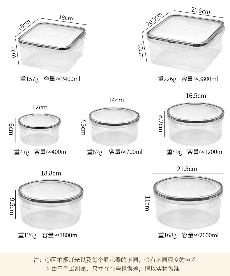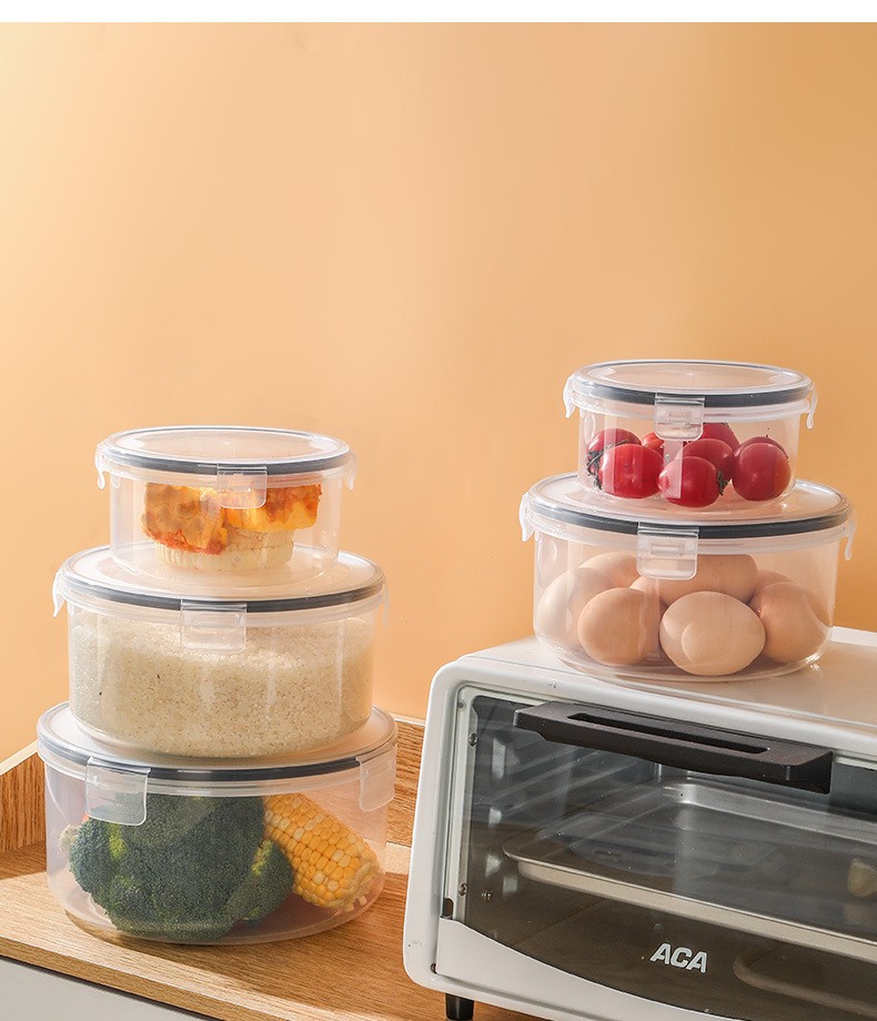 冰箱保鲜盒家用厨房蔬菜水果食品圆形密封收纳盒防漏塑料高透容器