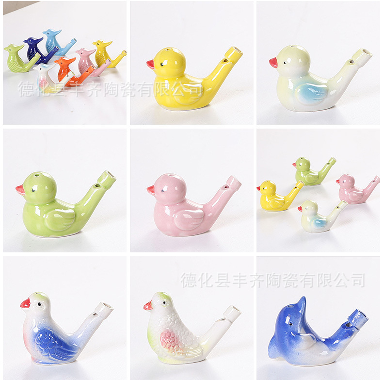 工厂直销批发陶瓷哨子新款带绳水鸟口哨儿童玩具景区陶笛挂件摆摊