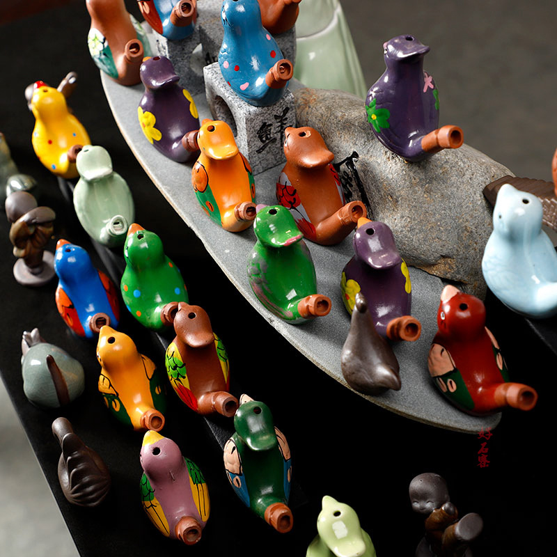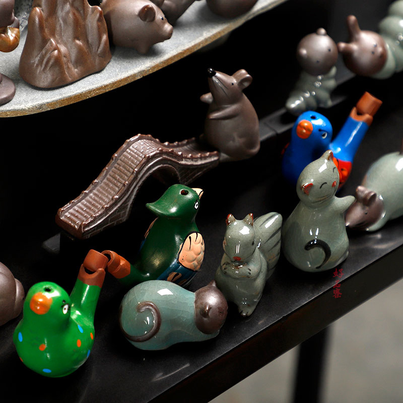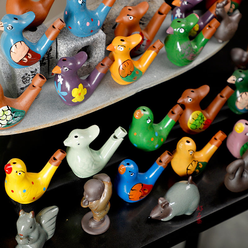 好石寨 陶瓷手绘造景小摆件DIY微景观装饰品儿童紫砂陶笛水鸟口哨