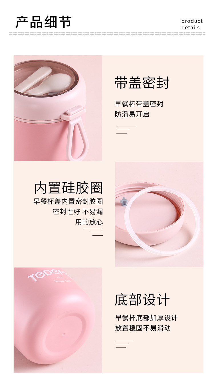 一件代发304不锈钢早餐杯日式保温汤杯带盖勺密封豆浆杯保温汤罐