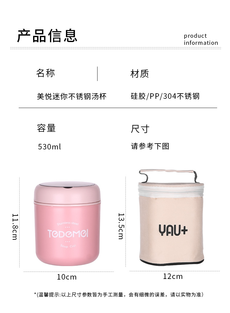 304 stainless steel soup cups + thermal bag (order note soup cups color)(304不锈钢汤杯+保温袋(下单备注汤杯颜色)) USD $3.73 9855 piece available