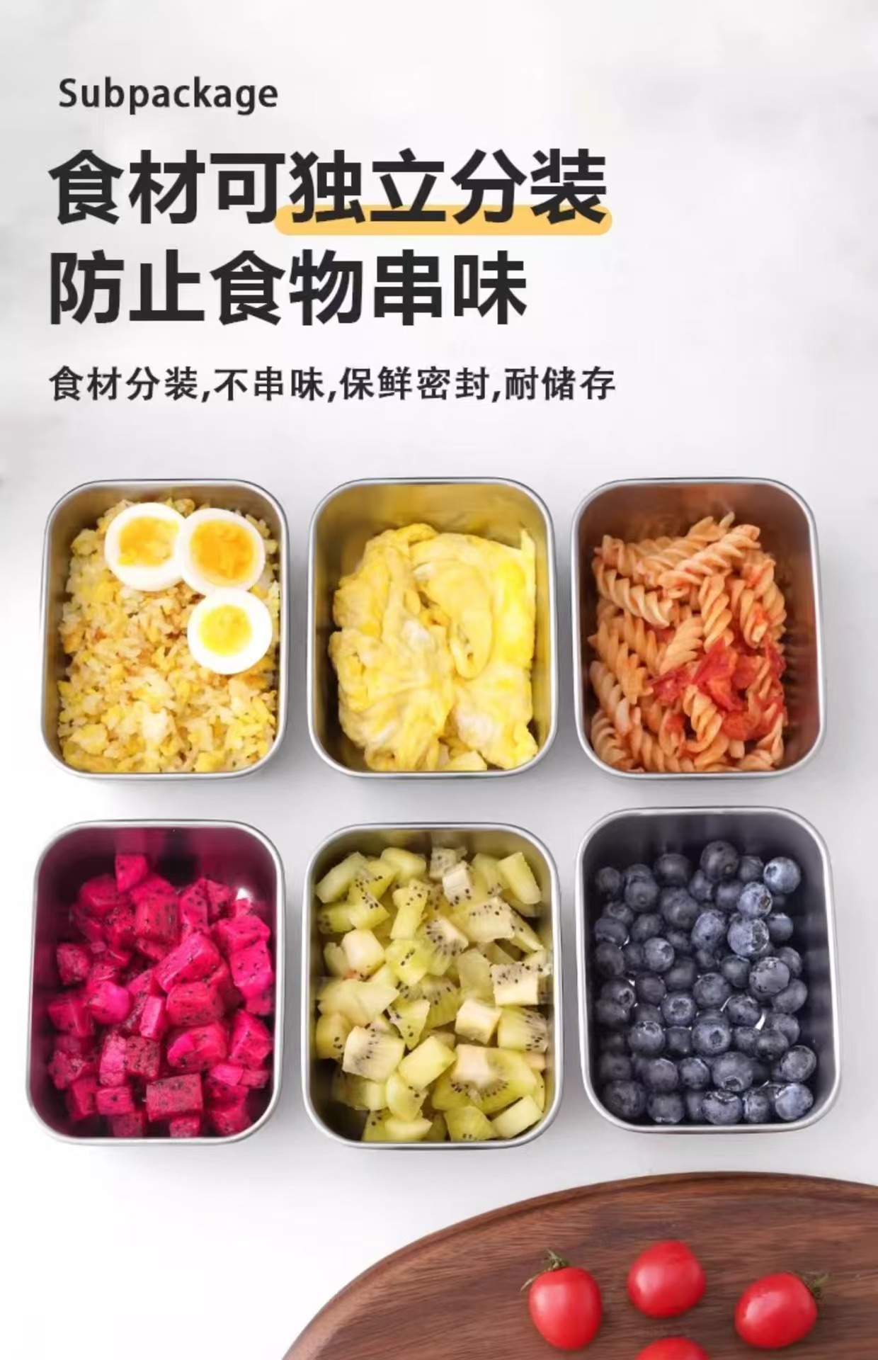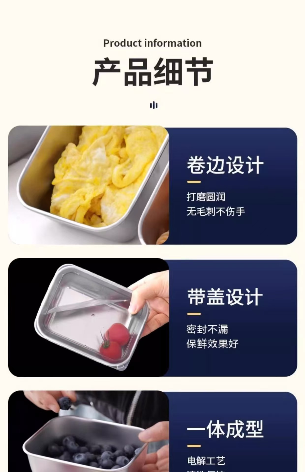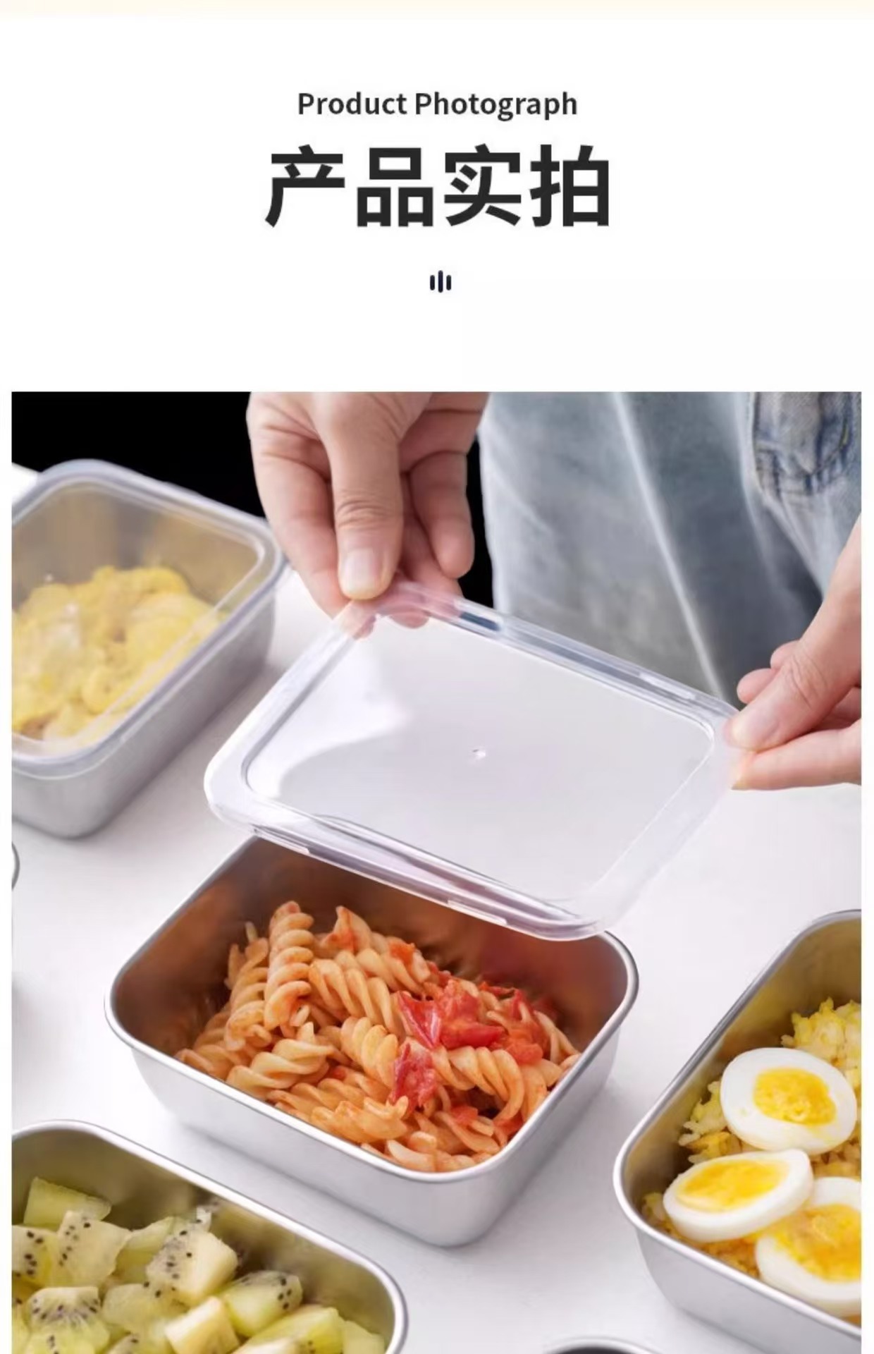 食品级不锈钢保鲜盒带盖密封盒方形毛巾盘便当盒分装盒备菜盒味盒