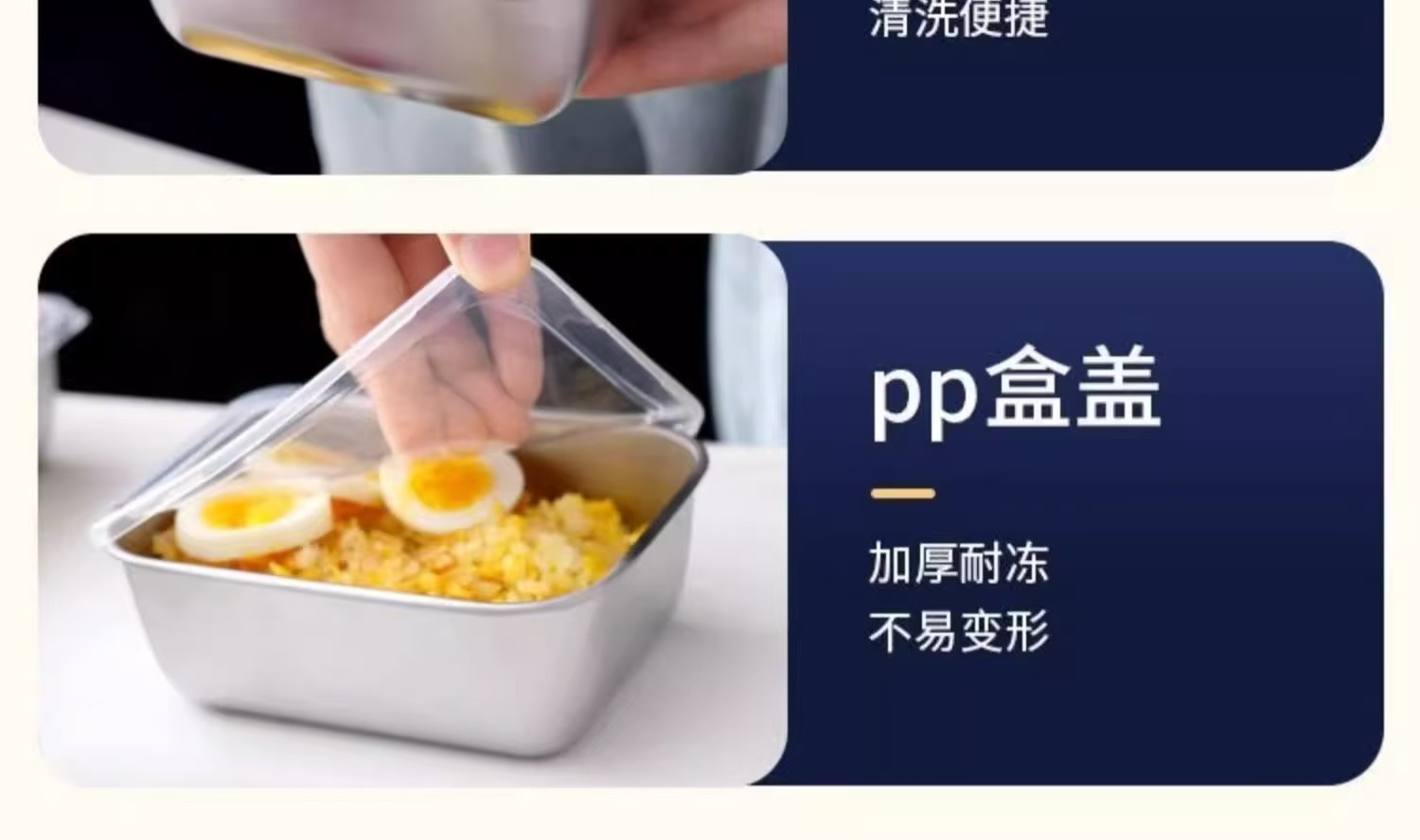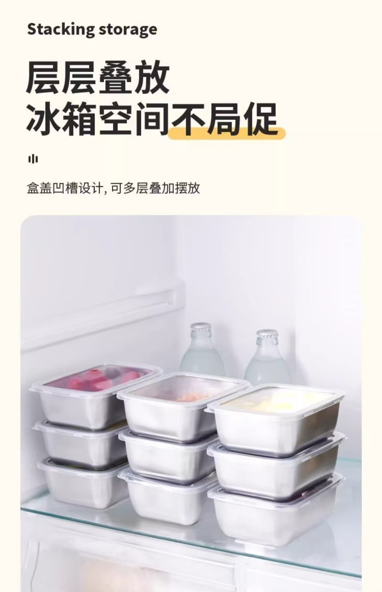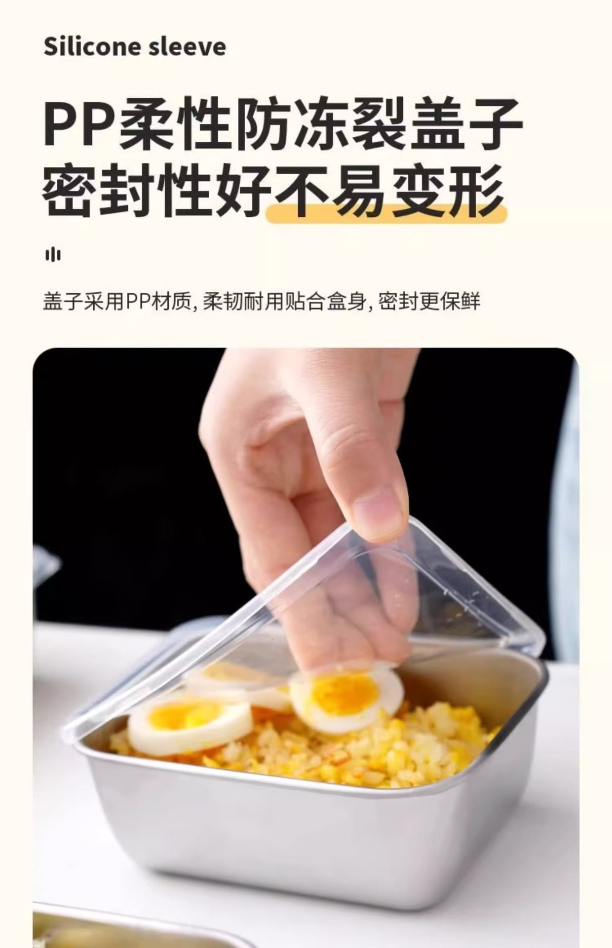 食品级不锈钢保鲜盒带盖密封盒方形毛巾盘便当盒分装盒备菜盒味盒