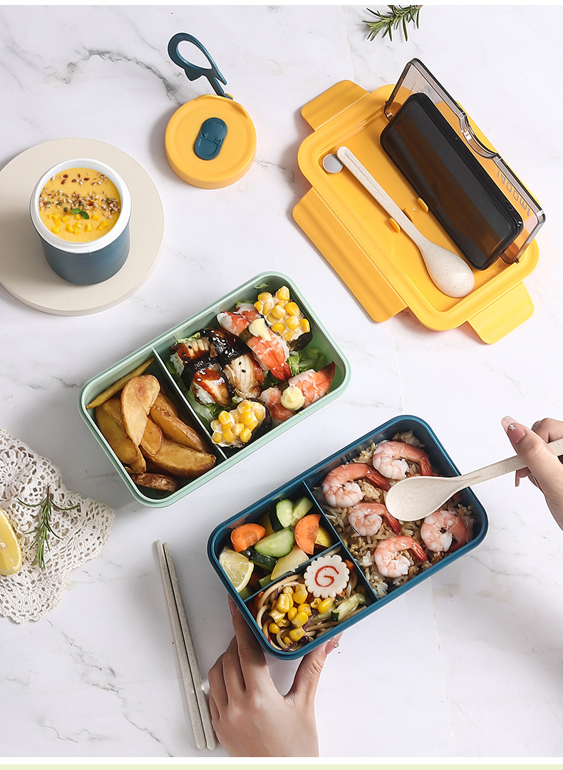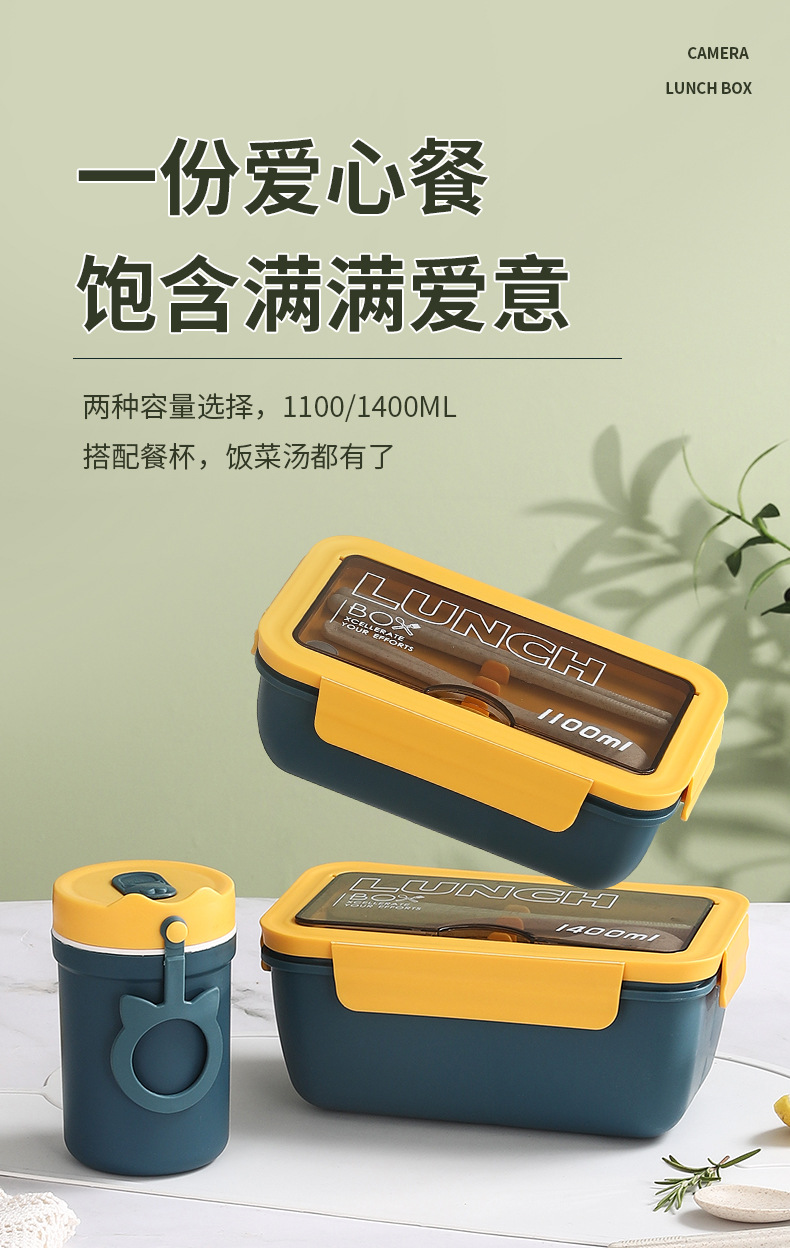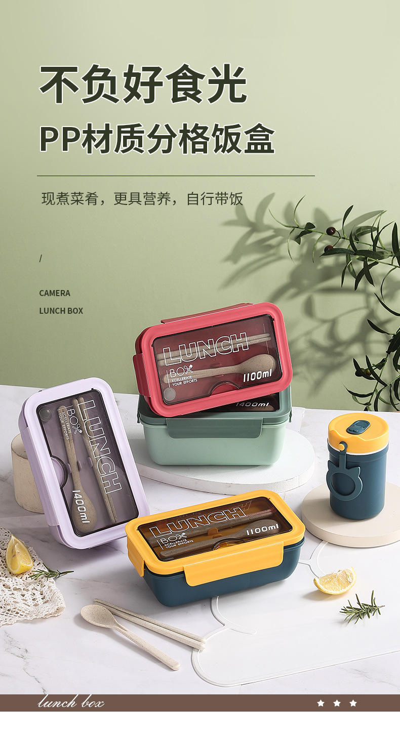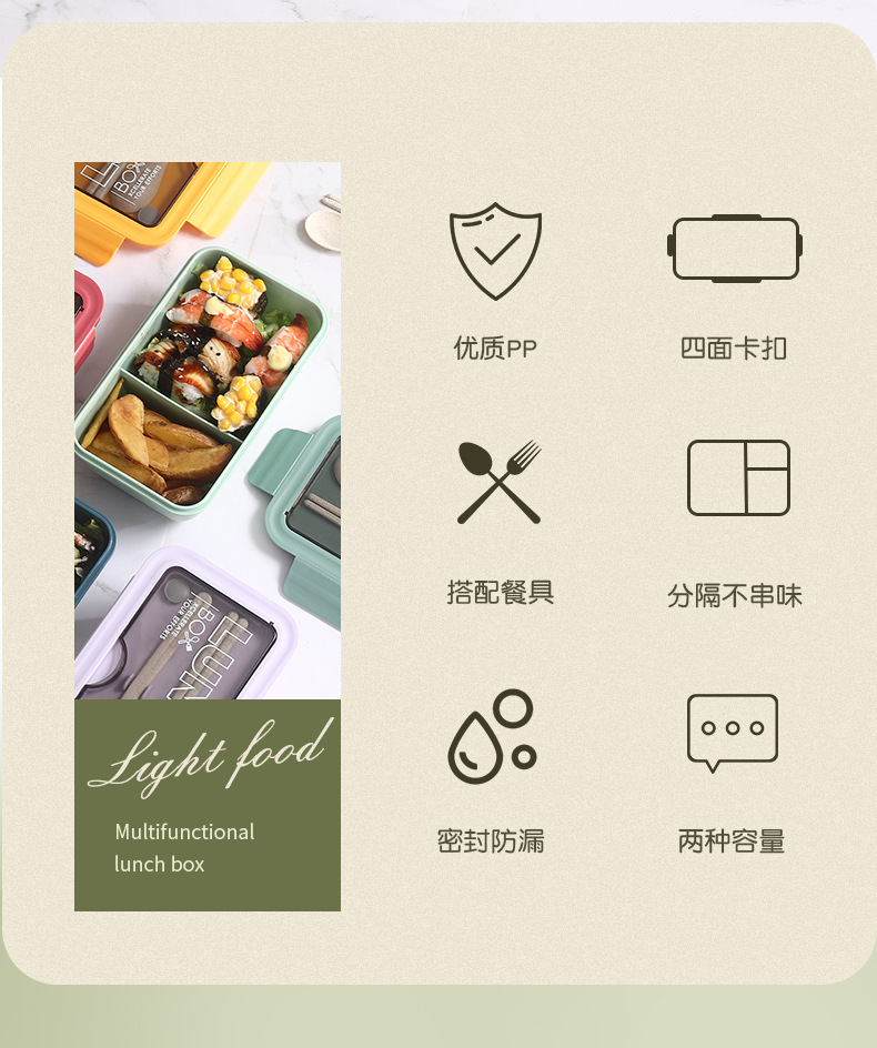 学生卡通分格PP饭盒防漏密封便携式上班族餐盒便当盒可微波炉加热