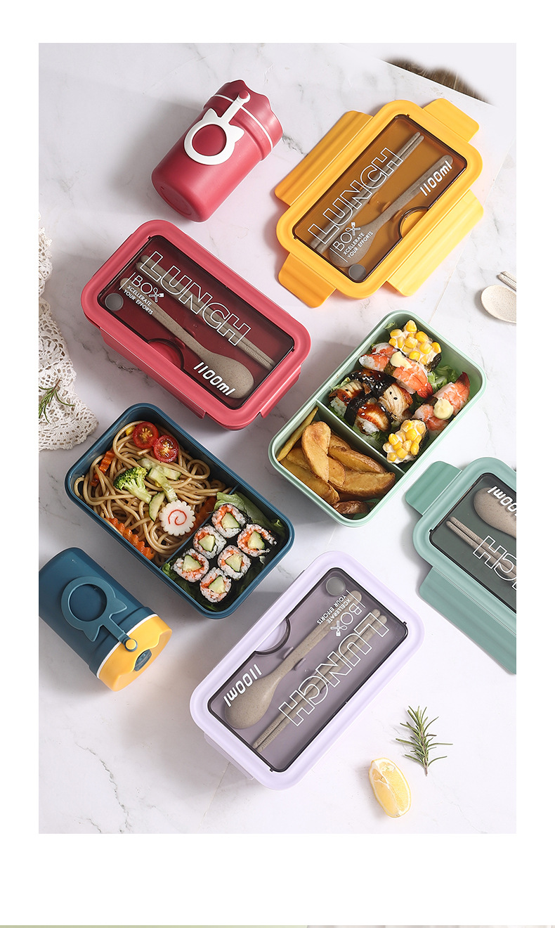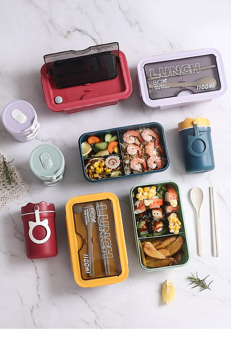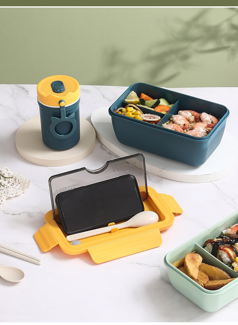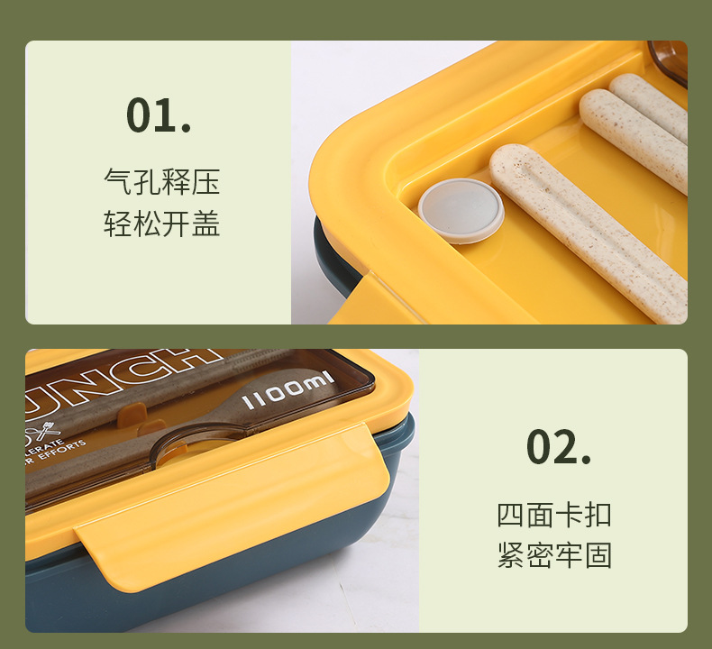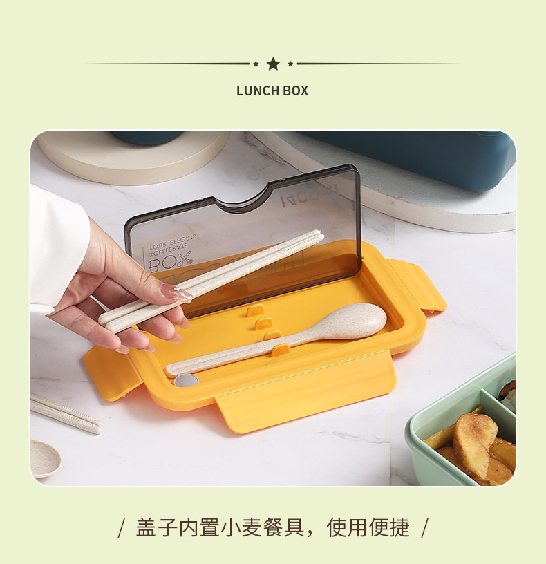 学生卡通分格PP饭盒防漏密封便携式上班族餐盒便当盒可微波炉加热