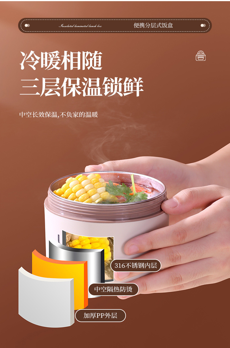不锈钢保温饭盒上班族316密封便当盒学生餐盒可微波炉加热汤碗