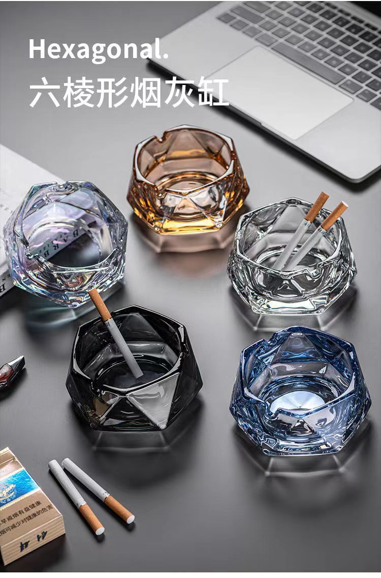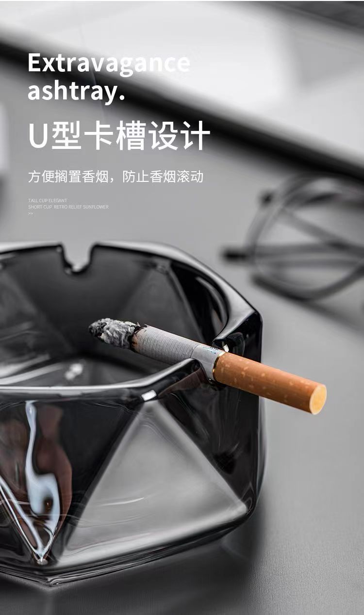 玻璃创意烟灰缸ins家用轻奢潮流简约办公室时尚客厅水晶烟缸
