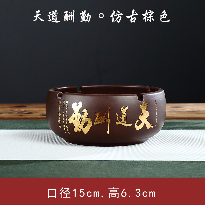 紫砂家用烟灰缸复古时尚中式个性陶瓷烟灰缸家用客厅办公室烟灰缸