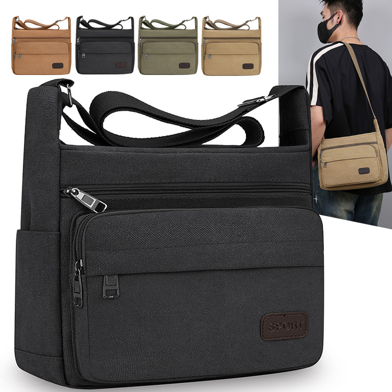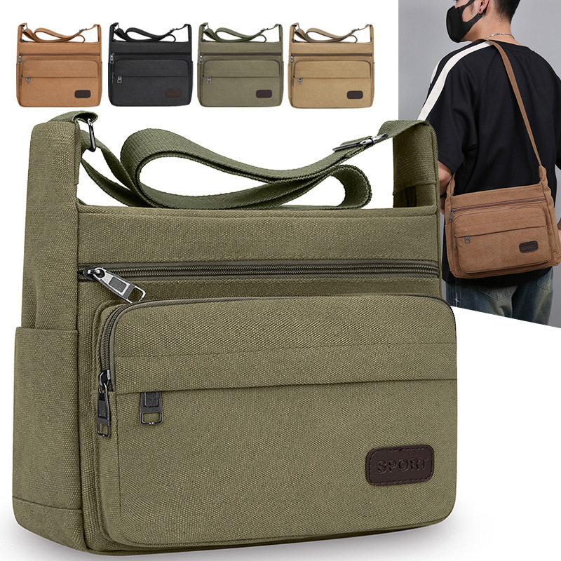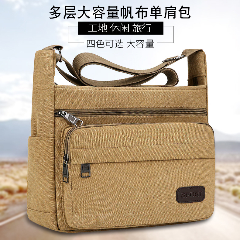 新款帆布包男单肩斜挎包休闲男包大容量中年男包多隔层地摊小包