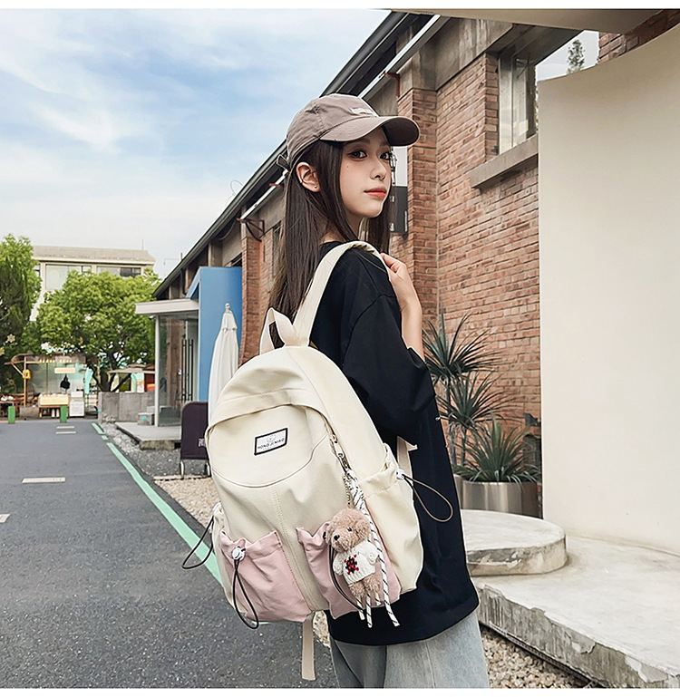 日系ins书包女初高中学生大容量拼色双肩包新款可爱情侣双肩书包