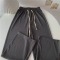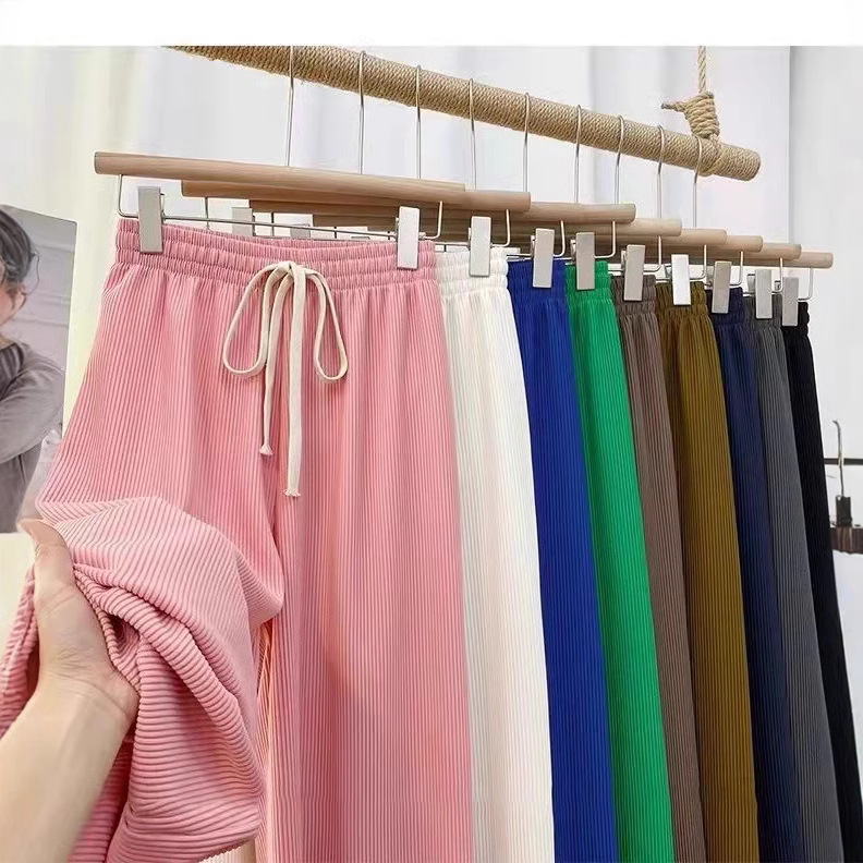 蛇骨纹新款拖地裤垂感褶皱蛇骨纹阔腿裤女早春百搭直筒宽松休闲裤
