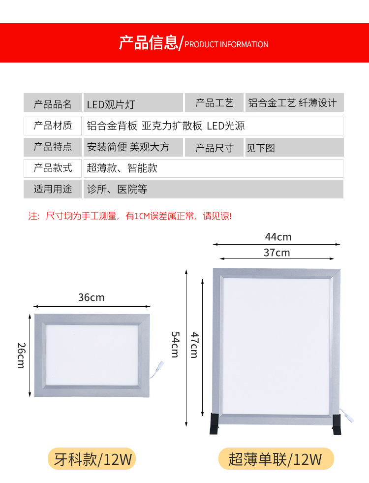 专供出口LED轻薄观片灯医用遥控调光斜看阅片牙骨科轻薄观片灯