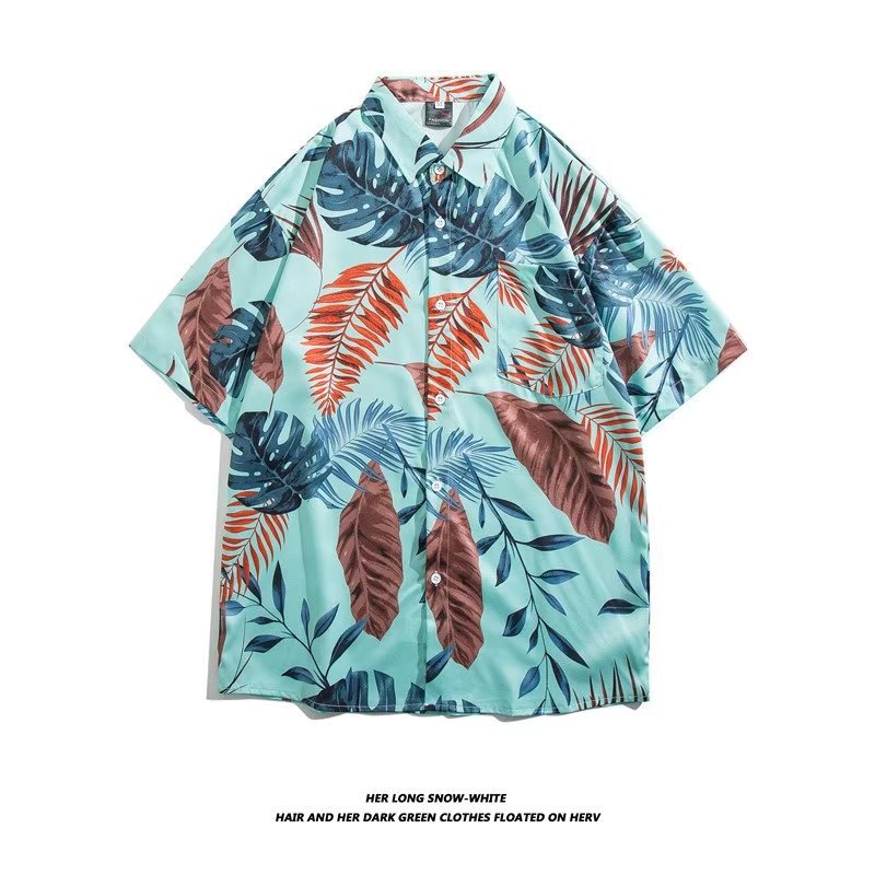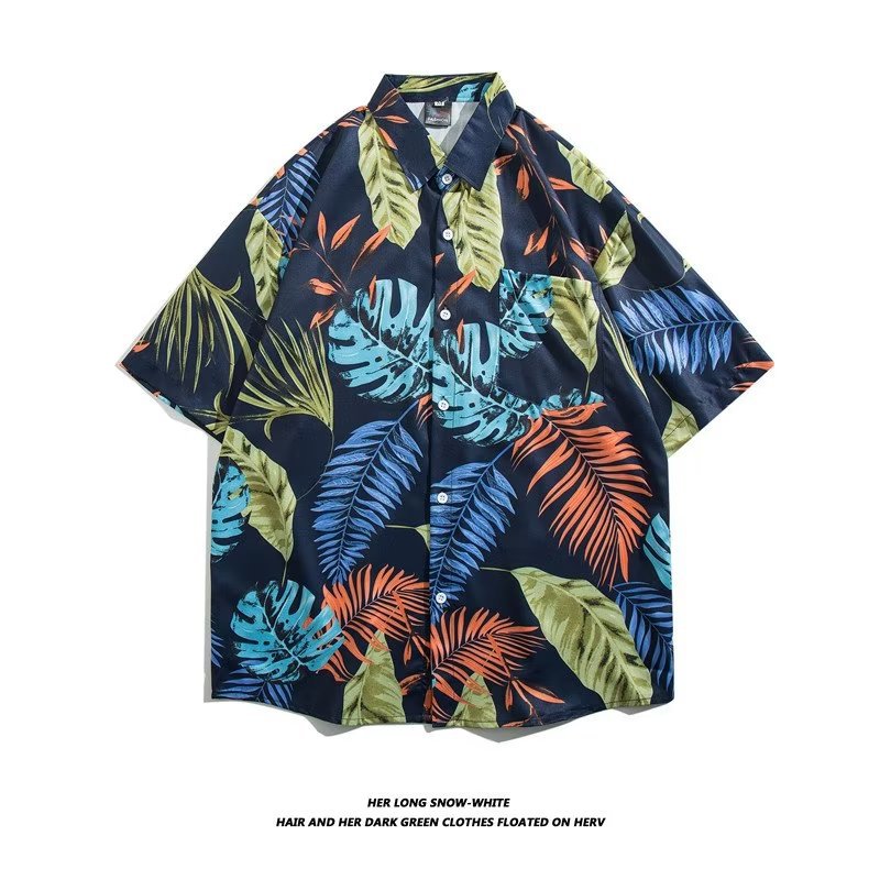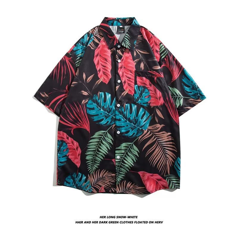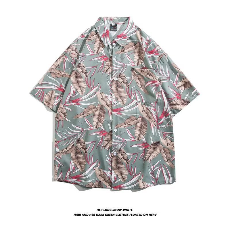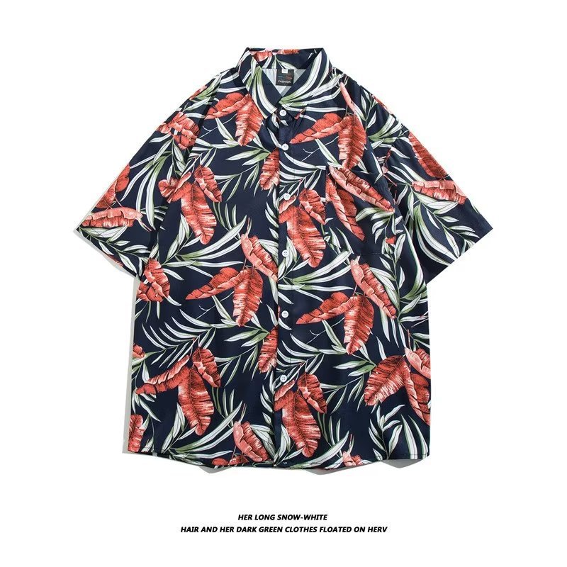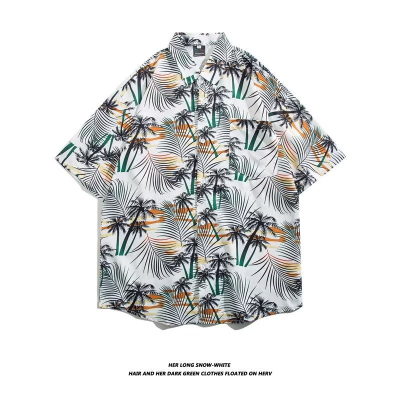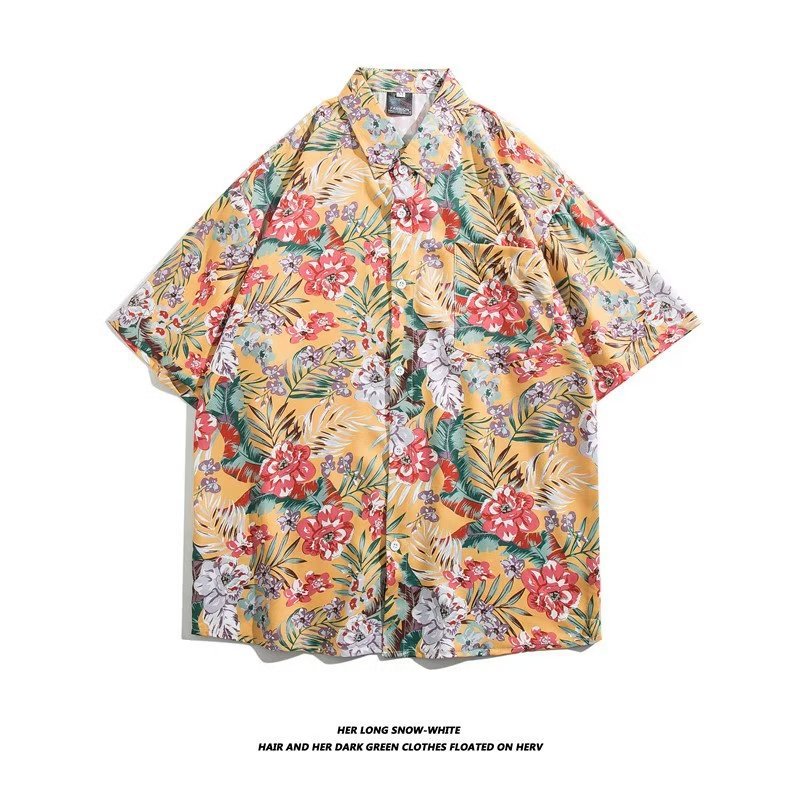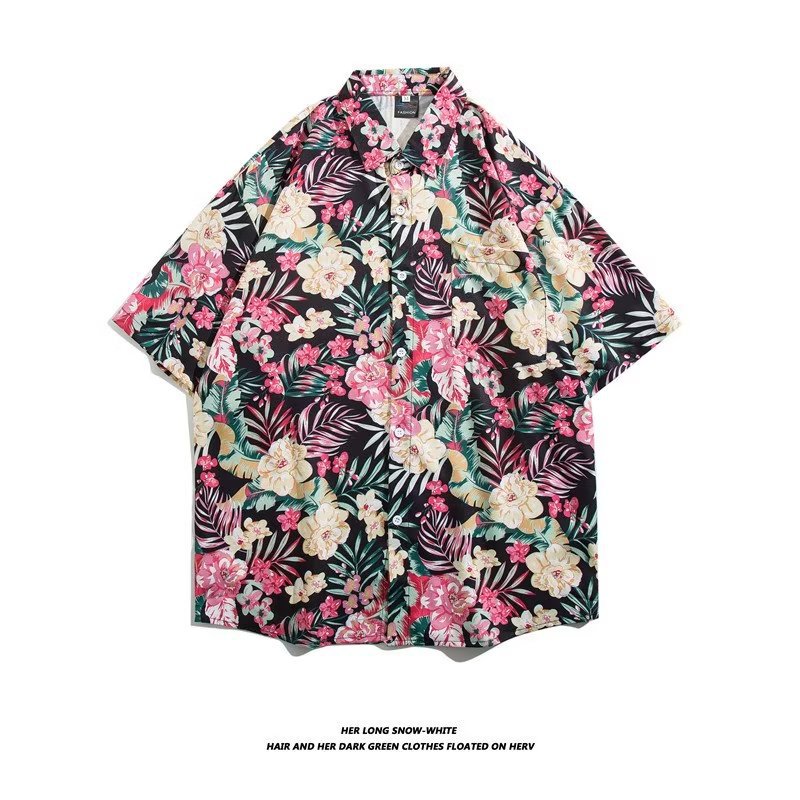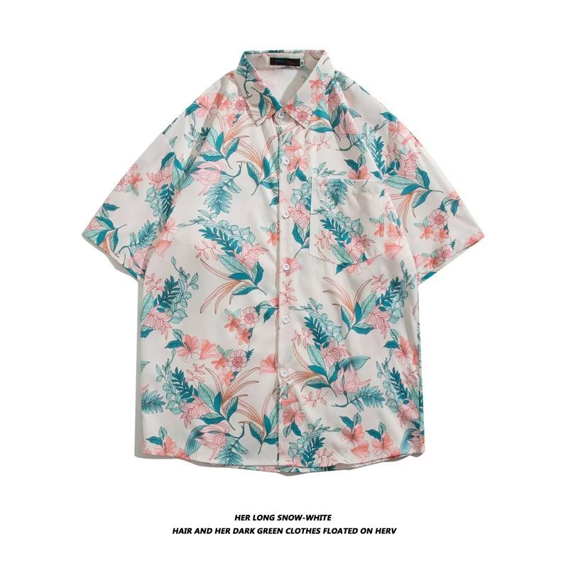夏威夷港风花衬衫男士短袖夏季薄款泰国潮牌日系宽松度假沙滩衬衣