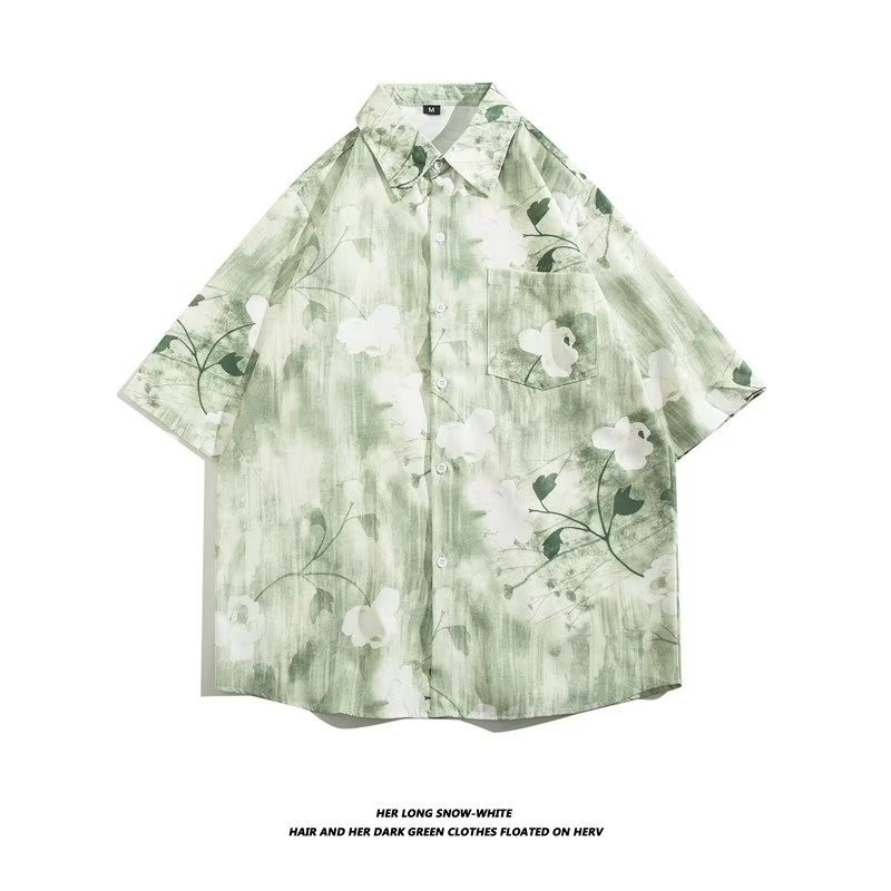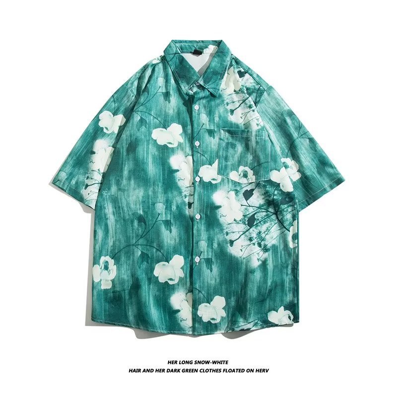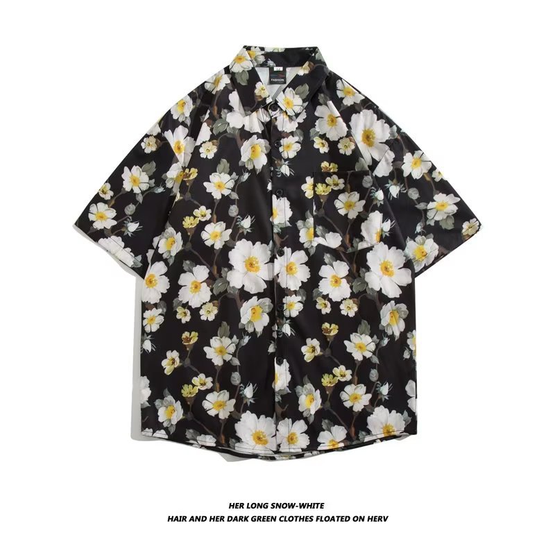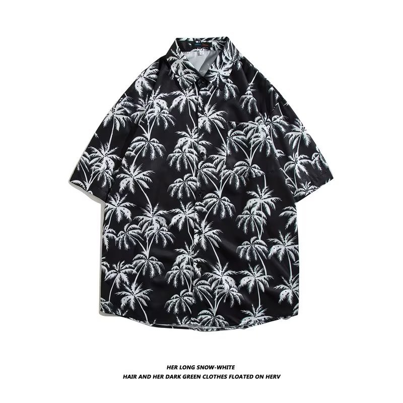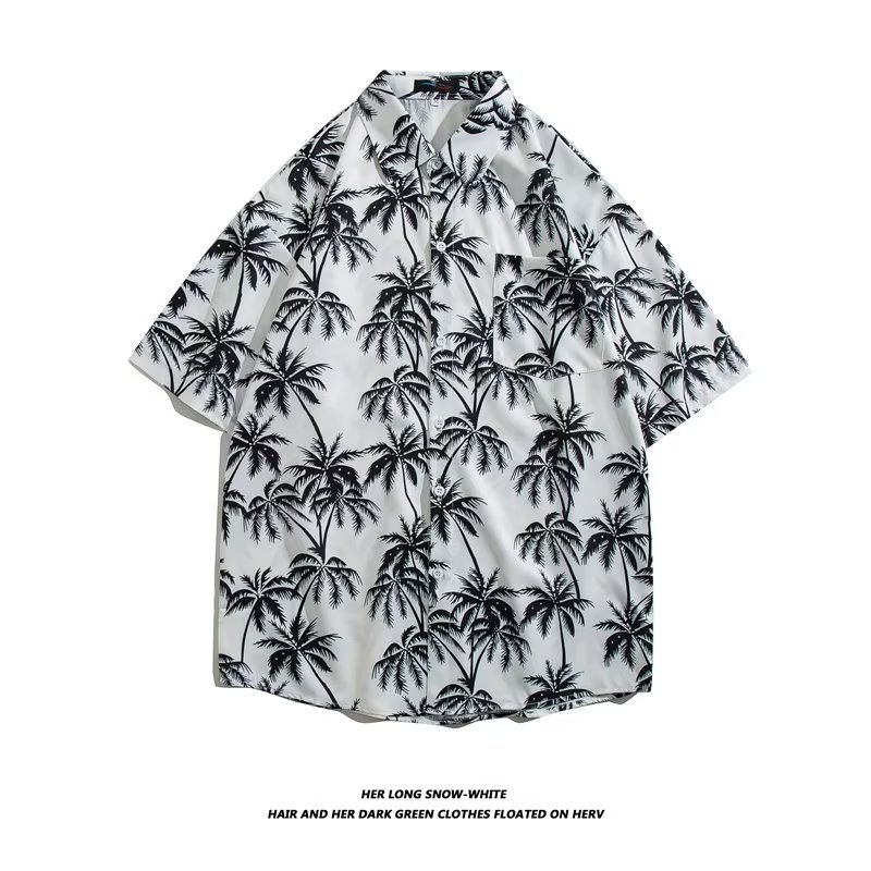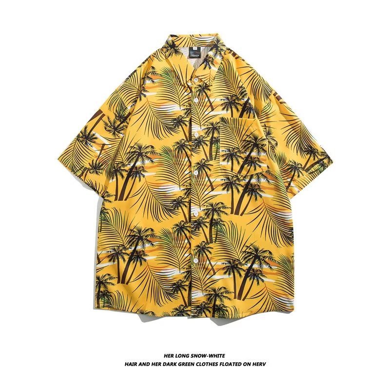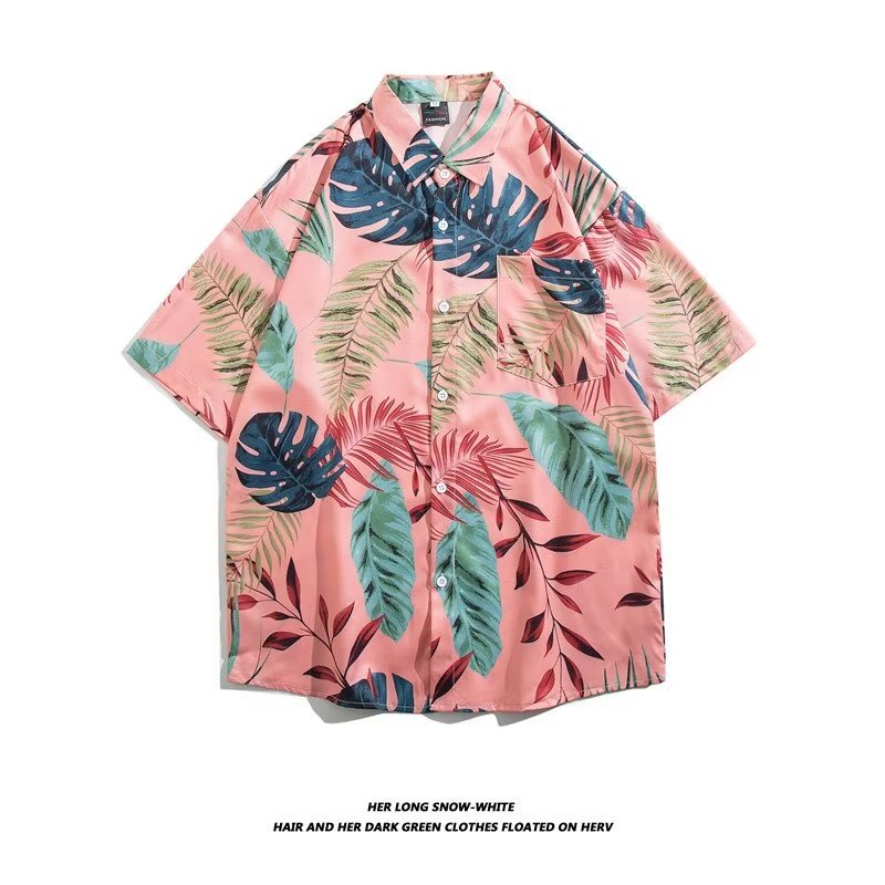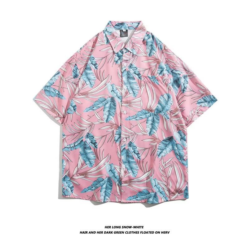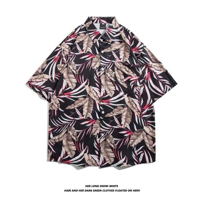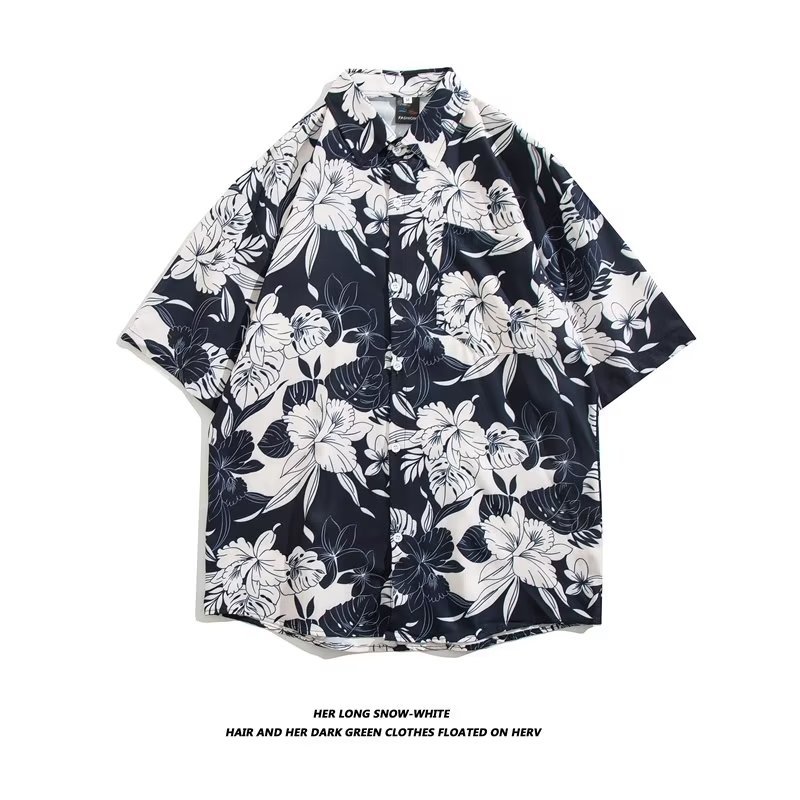 夏威夷港风花衬衫男士短袖夏季薄款泰国潮牌日系宽松度假沙滩衬衣