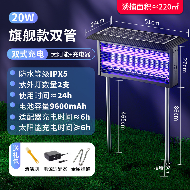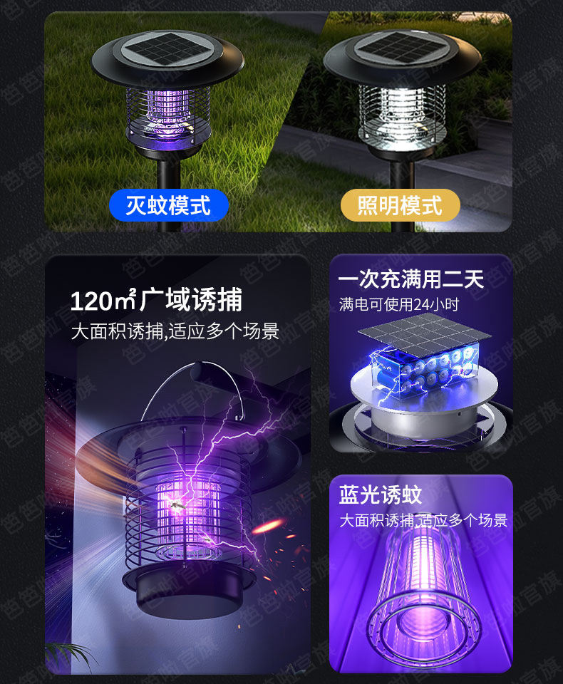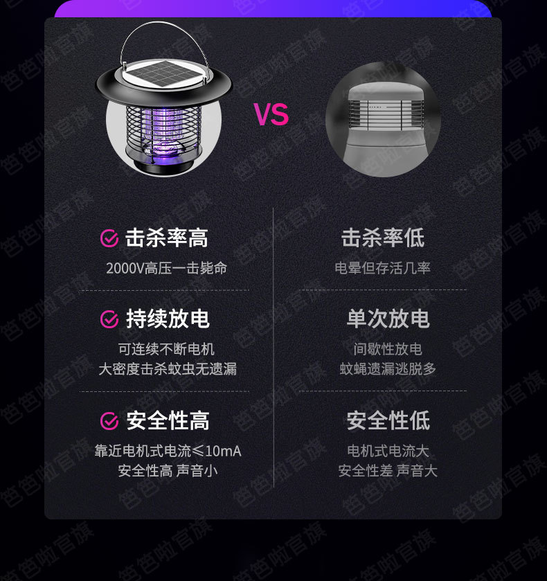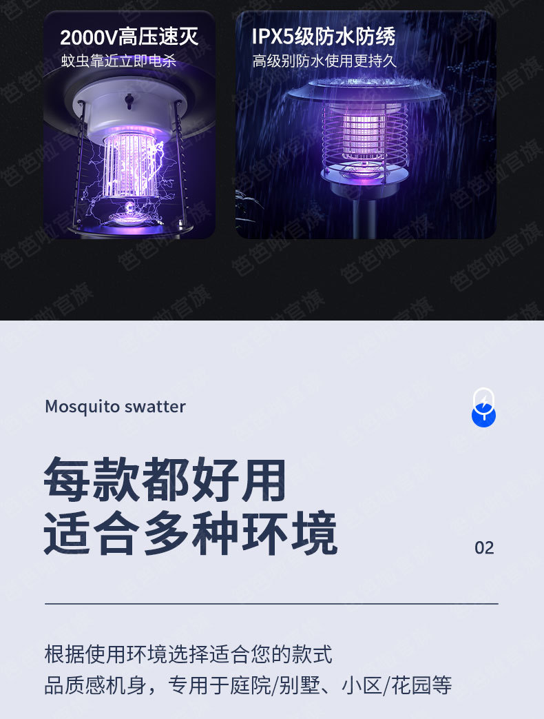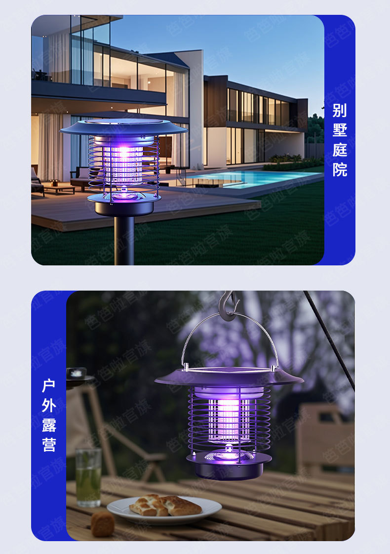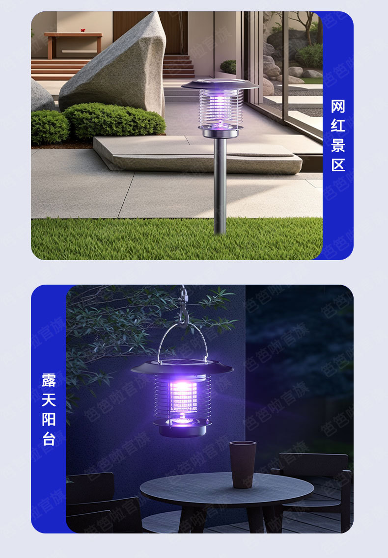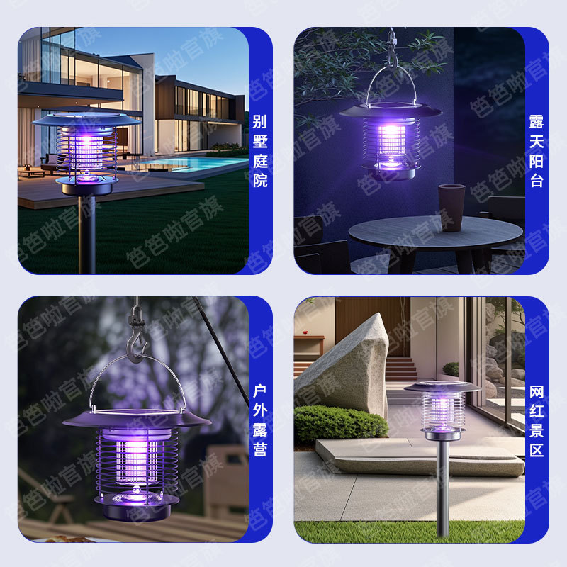笆笆啦太阳能灭蚊灯户外庭院花园防水灭蚊神器灭蝇虫灯大型驱蚊灯
