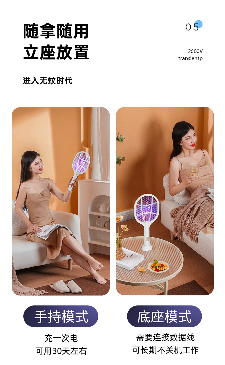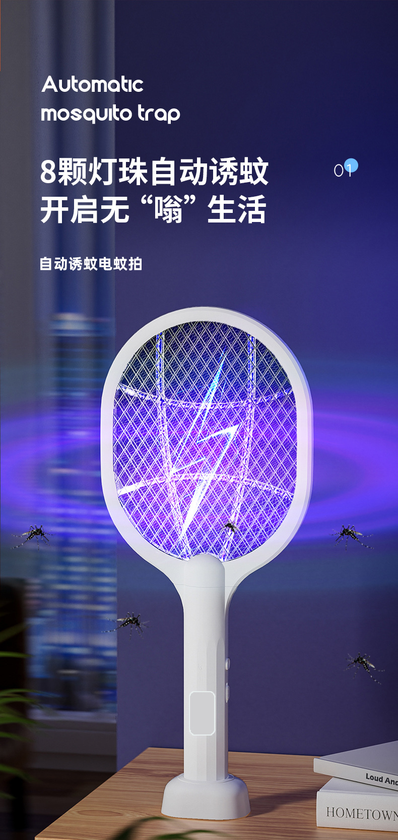 电蚊拍跨境充电式灭蚊拍二合一驱蚊器家用多功能自动电子灭蚊灯